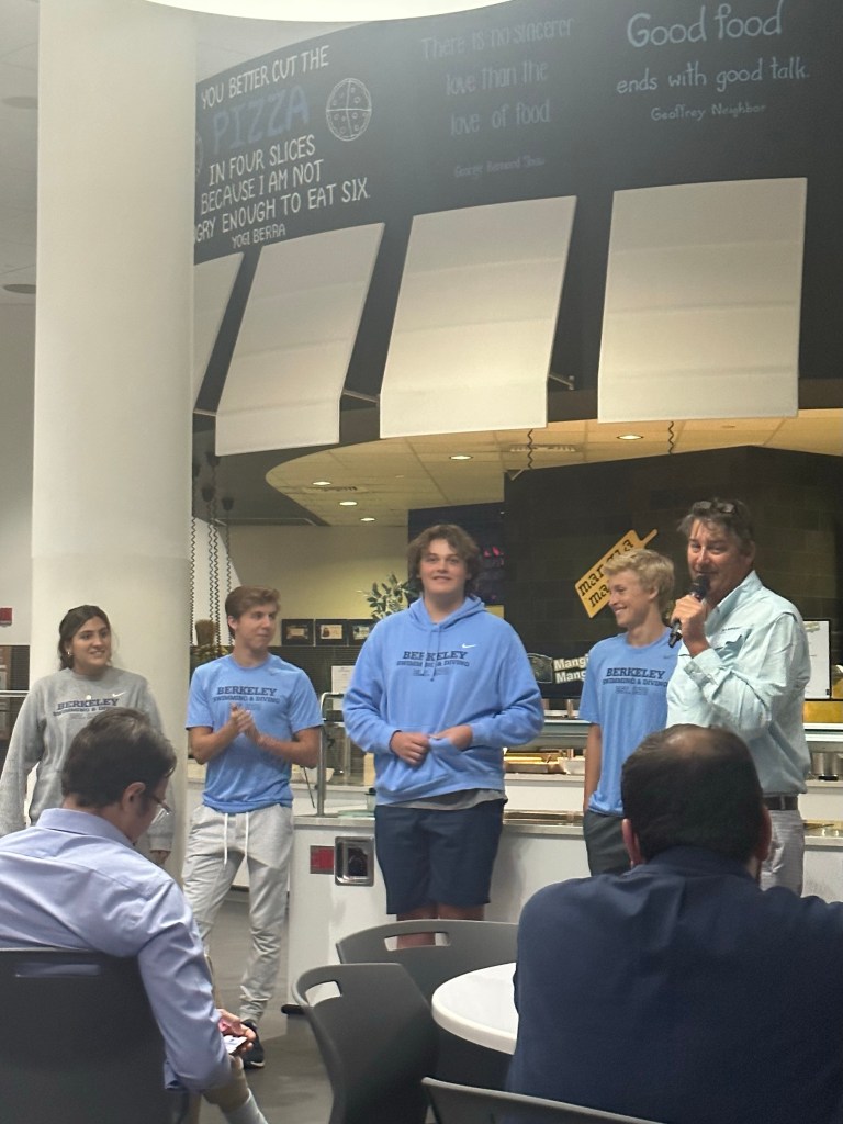 So proud of Davy as he swam his last race for Berkeley Prep today…