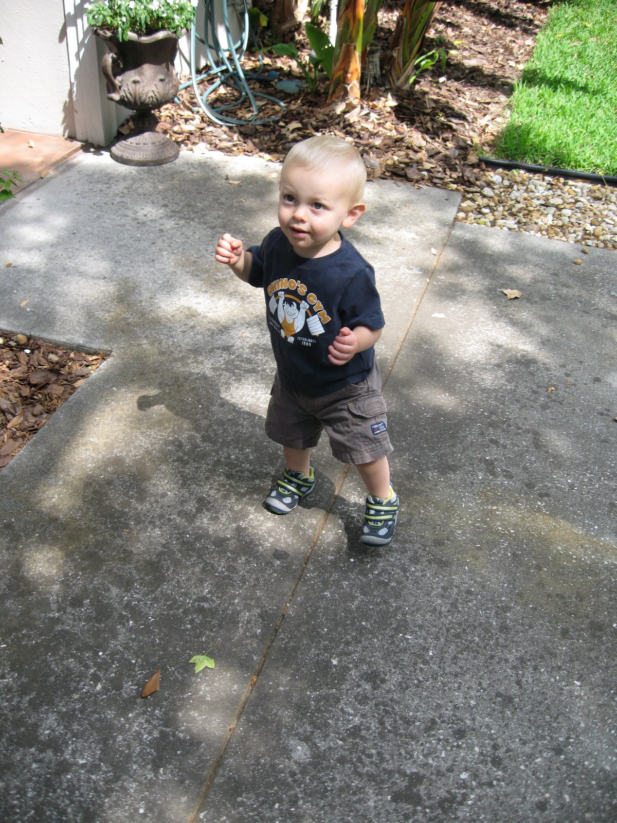 There really isn’t a specific day that Andy and I could say….”Davy started walking today”, he has been taking steps for over a month now. We were waiting for the day that Davy just got up and walked without us saying, “Big boys walk, use your feet”. Well, today seems to be the day. Easter Sunday! Today he walked all over the place. To the kitchen, on and off his toys, and even outside. Boy are we proud of him….