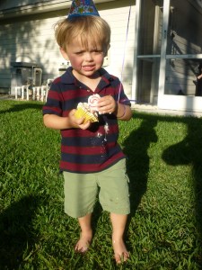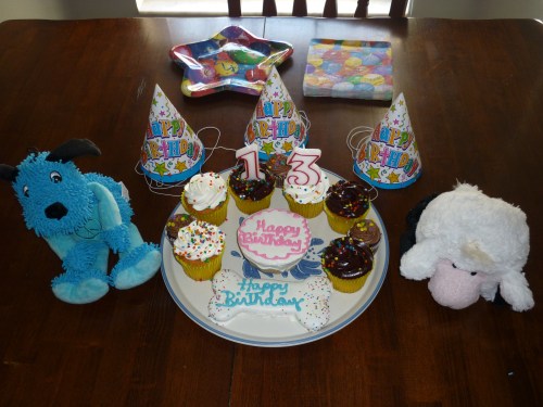 On April 6th, Dusty turned 13 years old. Andy and I were so excited because there were several times that we didn’t think that he was gonna make it. So what do we do when there is a birthday???… We throw a party!!! With six children under the age of 9, how could we not. We decorated the house with balloons, gifts, cupcakes, and even had a favor for his friend Lucy. I had bought a doggie cupcake, but while we were singing “Happy Birthday” to Dusty he just couldn’t help himself and he took off with a real one. Love him… :O)