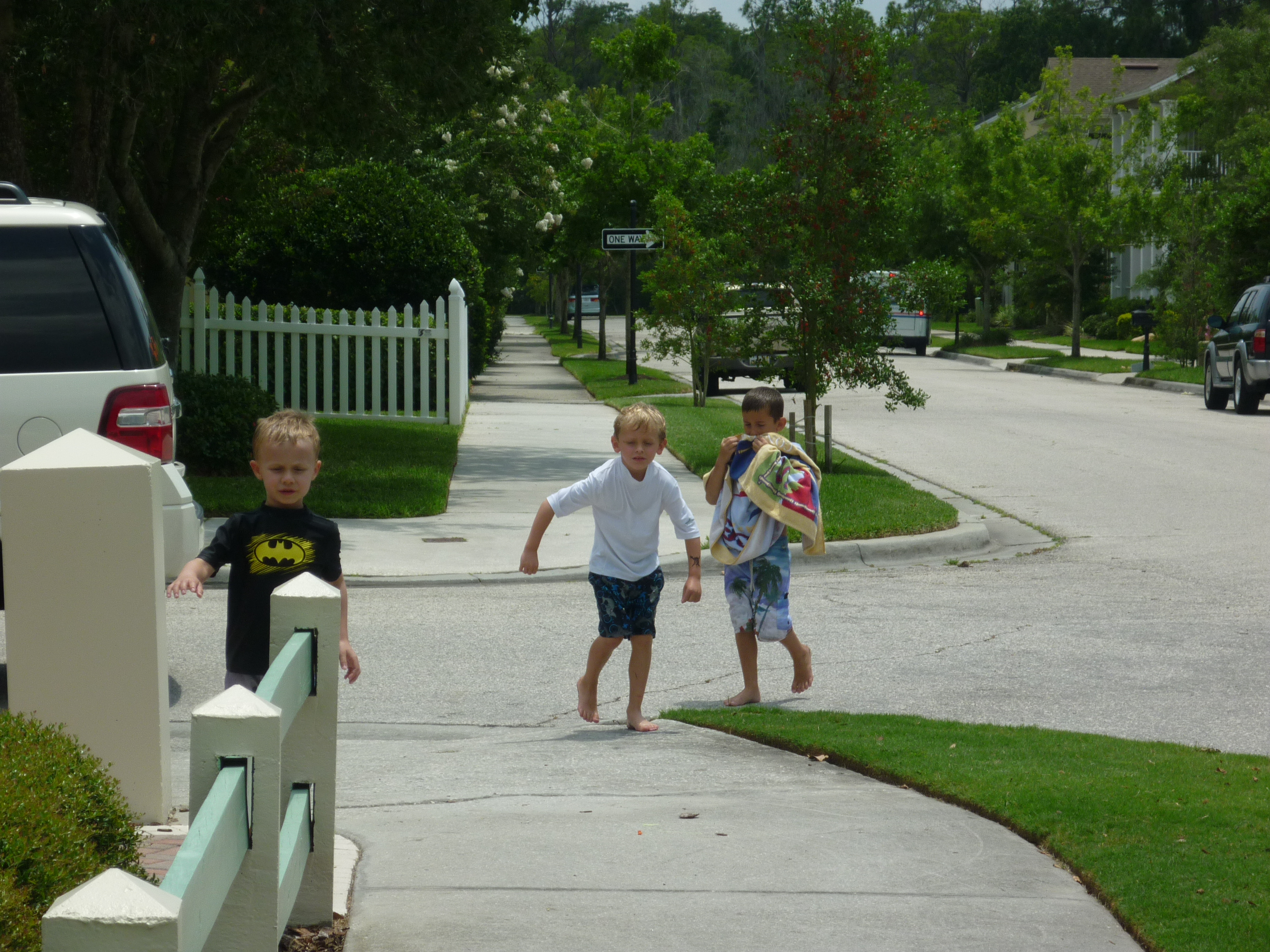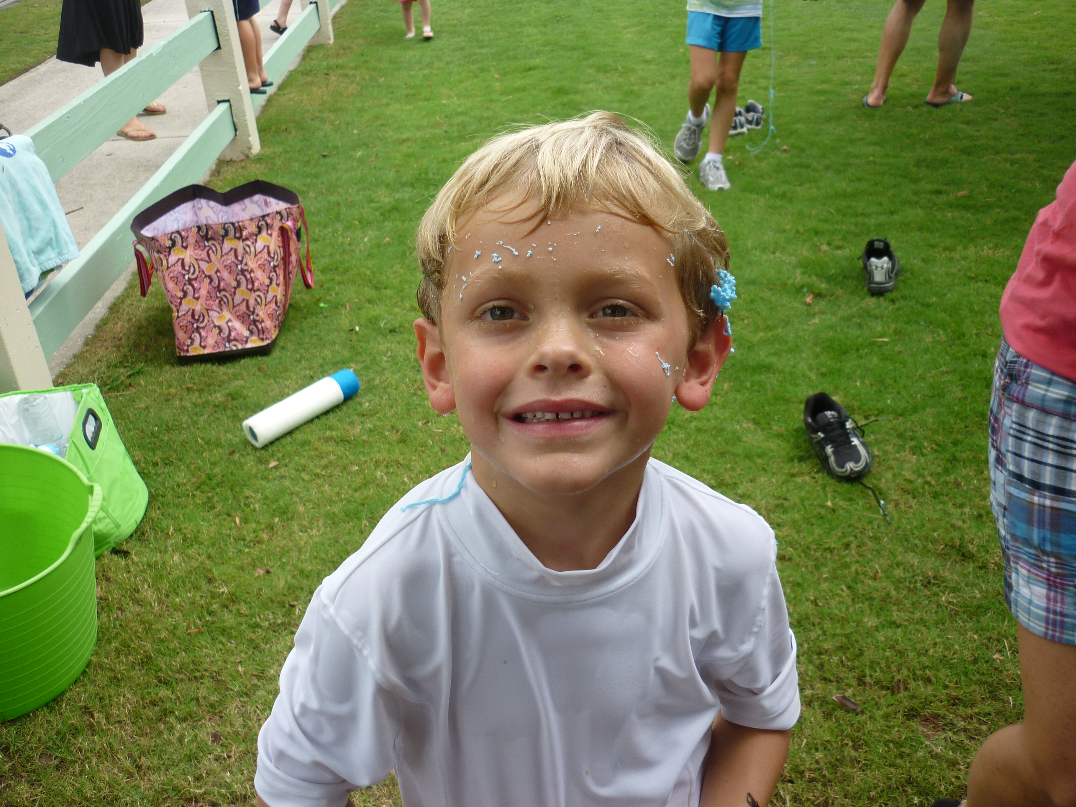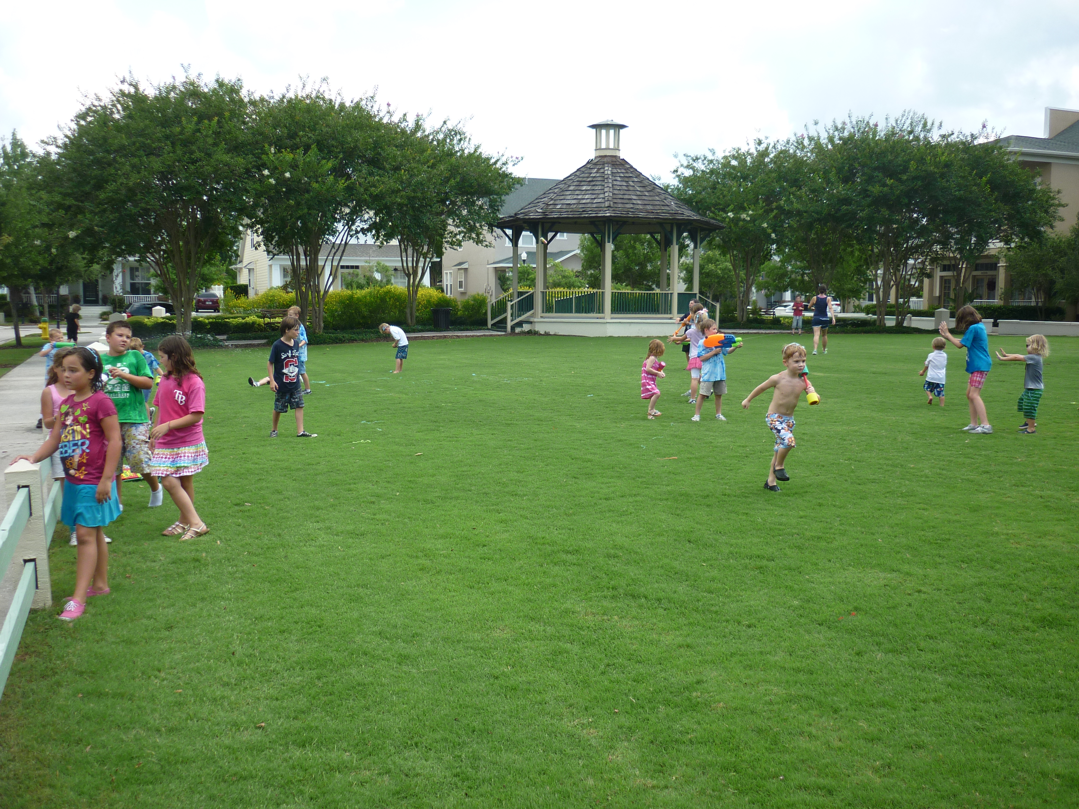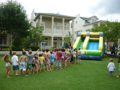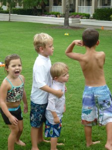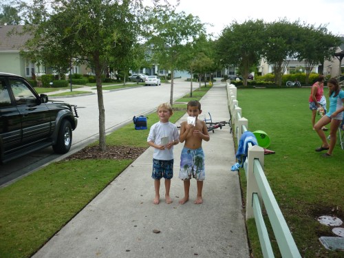 School is officially out for everyone!!! As the Westchase Elementary bus pulled up to the bus stop, so many parents were there just waiting to kick off the summer. The children were met with blasts from water guns, water balloons, and silly string! They ran and squealed with such joy. Since it was a half day the neighborhood decided to throw a Summer’s Here party on the lawn. There was pizza, snacks, drinks, and lots of frozen treats. The boys were having such a good time, I just didn’t have the heart to put them down for a nap. Davy and Connor even got to have a sleepover at Caiden’s. It’s gonna be a great summer! :O)
