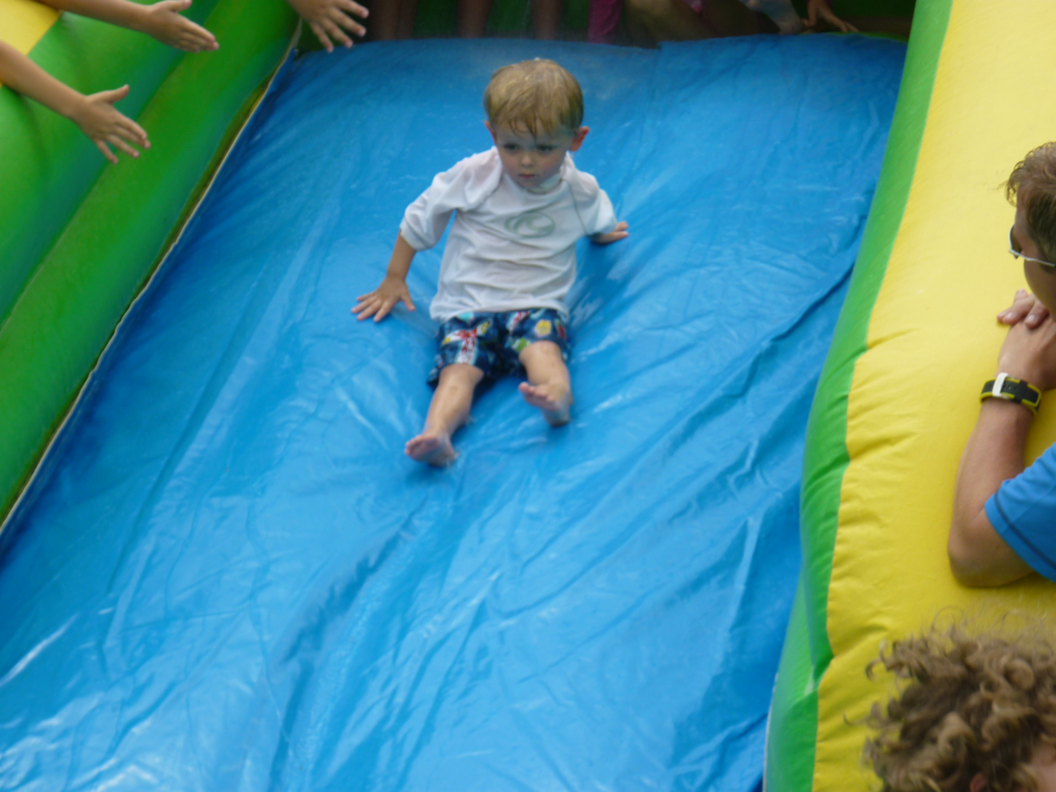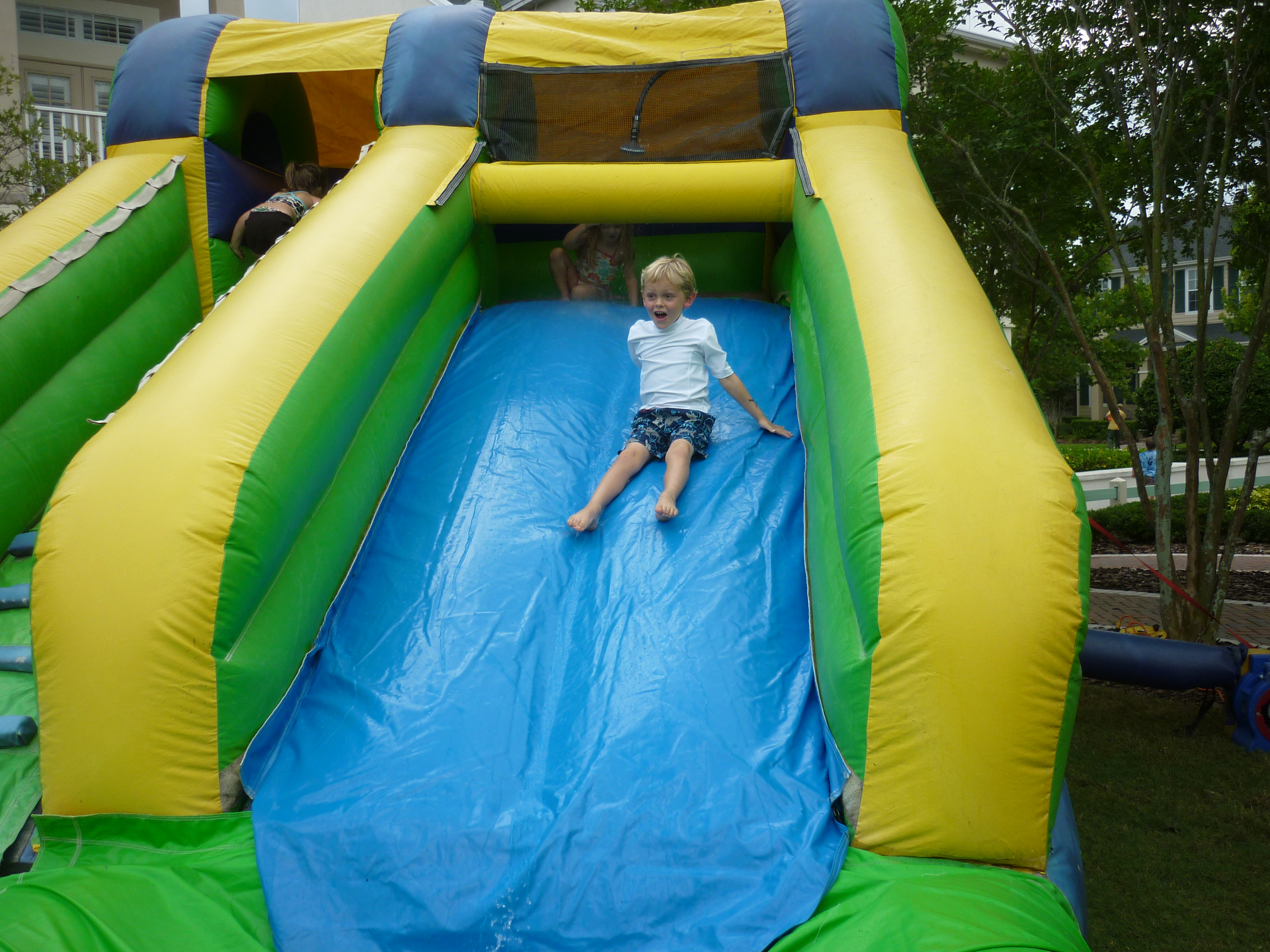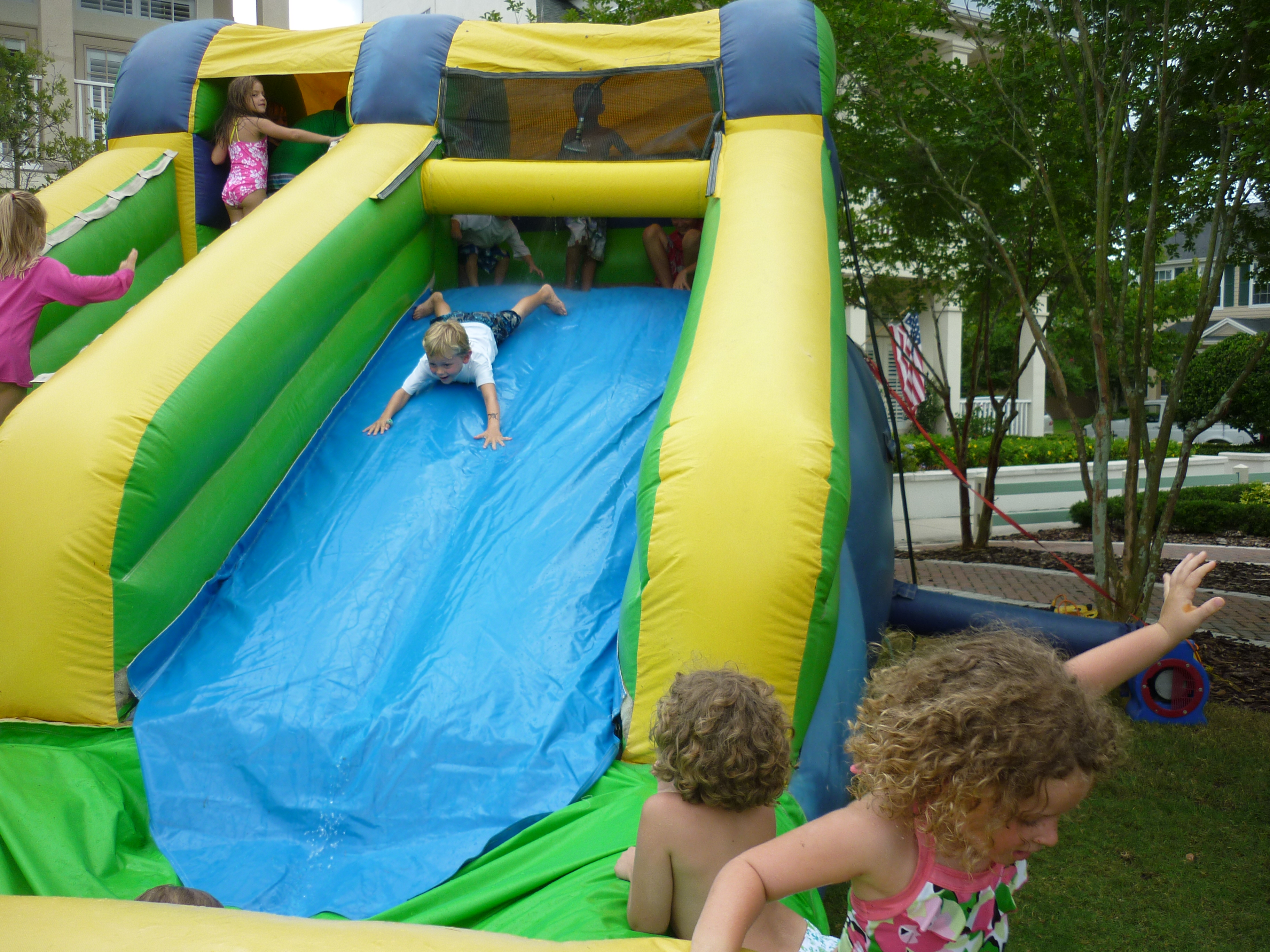 School is officially out for everyone!!! As the Westchase Elementary bus pulled up to the bus stop, so many parents were there just waiting to kick off the summer. The children were met with blasts from water guns, water balloons, and silly string! They ran and squealed with such joy. Since it was a half day the neighborhood decided to throw a Summer’s Here party on the lawn. There was pizza, snacks, drinks, and lots of frozen treats. The boys were having such a good time, I just didn’t have the heart to put them down for a nap. Davy and Connor even got to have a sleepover at Caiden’s. It’s gonna be a great summer! :O)