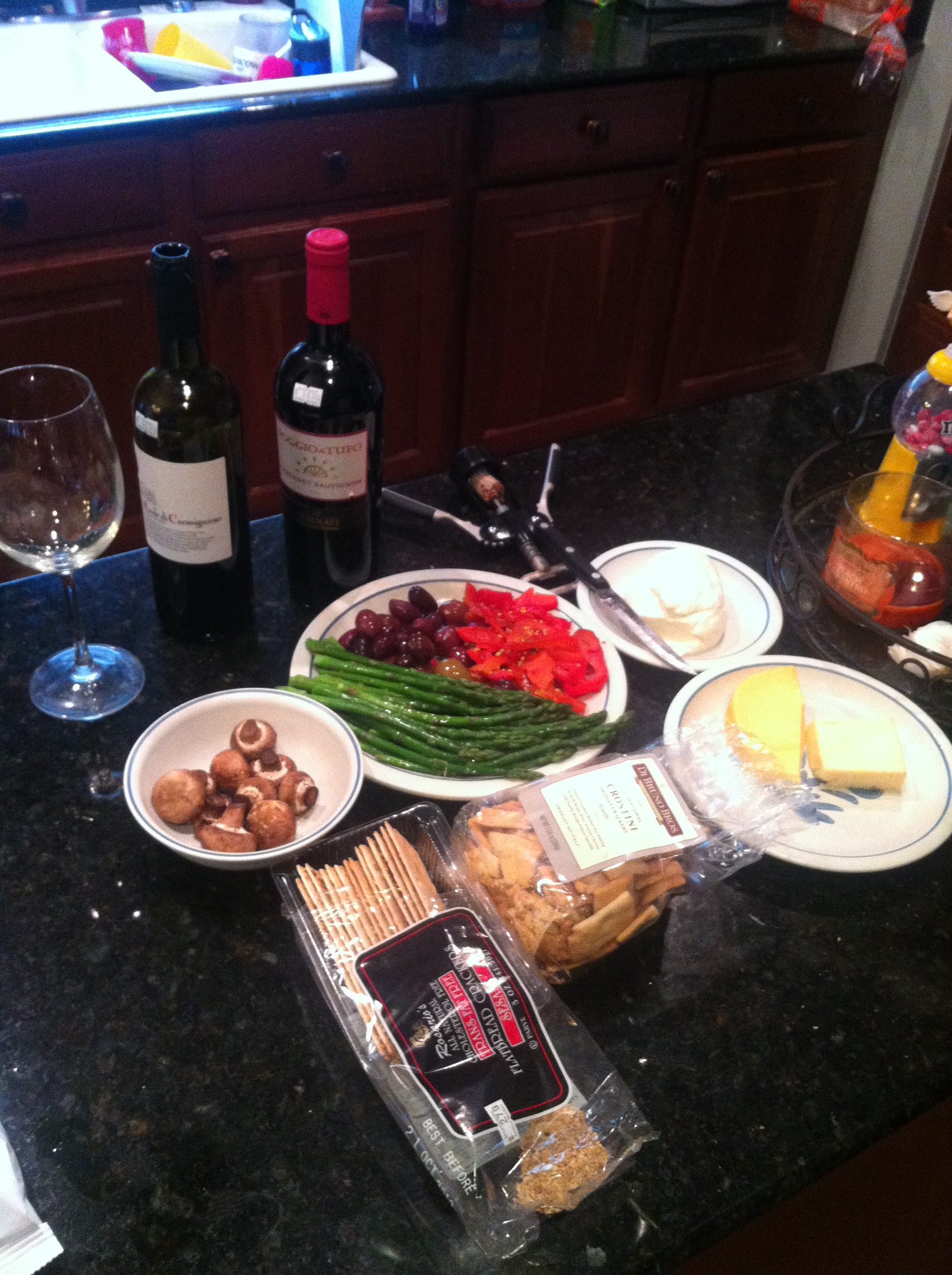 Since our weekend was going to be super busy and Andy had a late meeting planned for Monday, his parents decided to come up and bring dinner for his birthday today. They stopped at Marraro’s in St. Pete and picked up some Italian sausage’s, crusted tuna filets, and a whole spread for antipasto. Delicious!