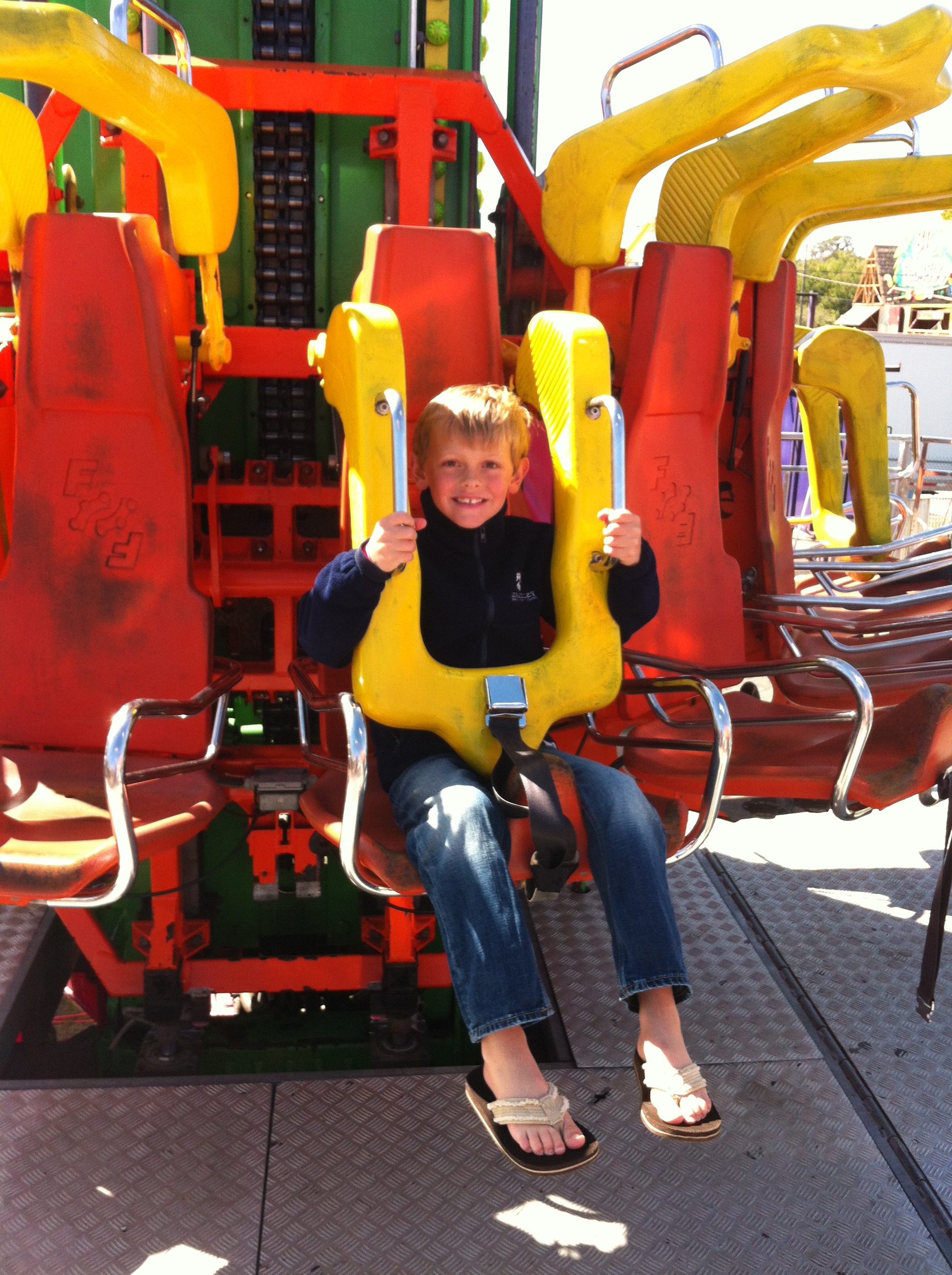 This year mom and I took the kids on the 20$ all you can ride arm band day! This was the best idea and Matty is now 42 inches so he can ride almost all of the rides. 🙂