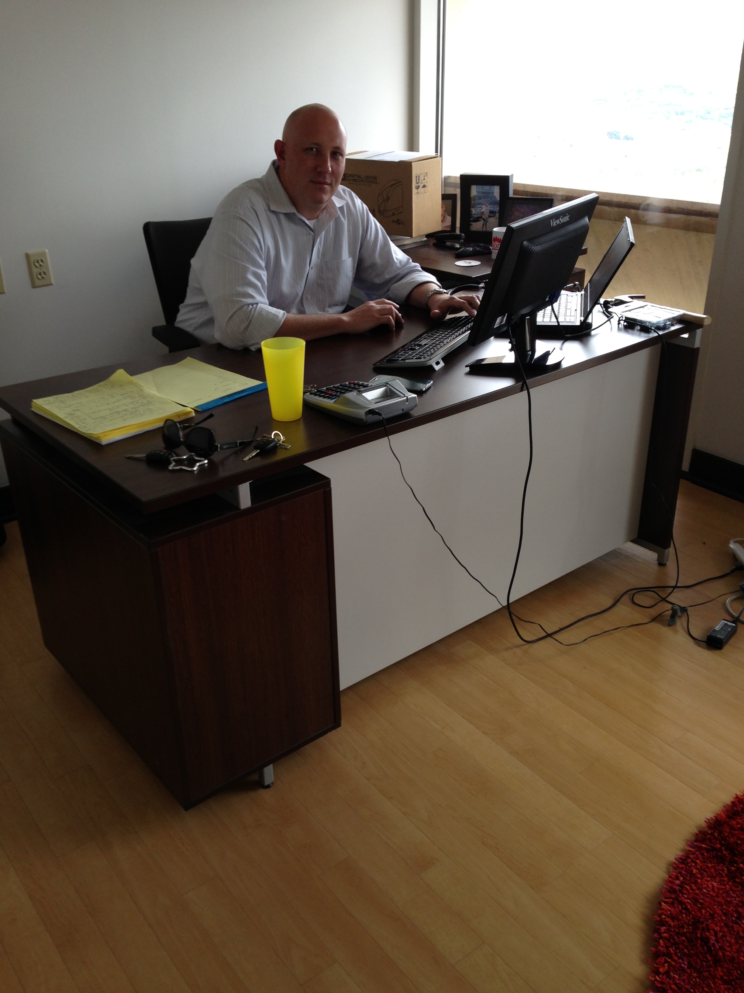 Andy asked me to come down and help him decorate his office, so I took a quick trip on over to Ikea and purchased a glass round top table, 2 high back black leather chairs, a round red shag carpet to match the painting that the boys made him for Father’s Day, a bookshelf, and a mini refrigerator. He was super pleased, now I just have to complete his new office look with a few more things to hang on the walls…