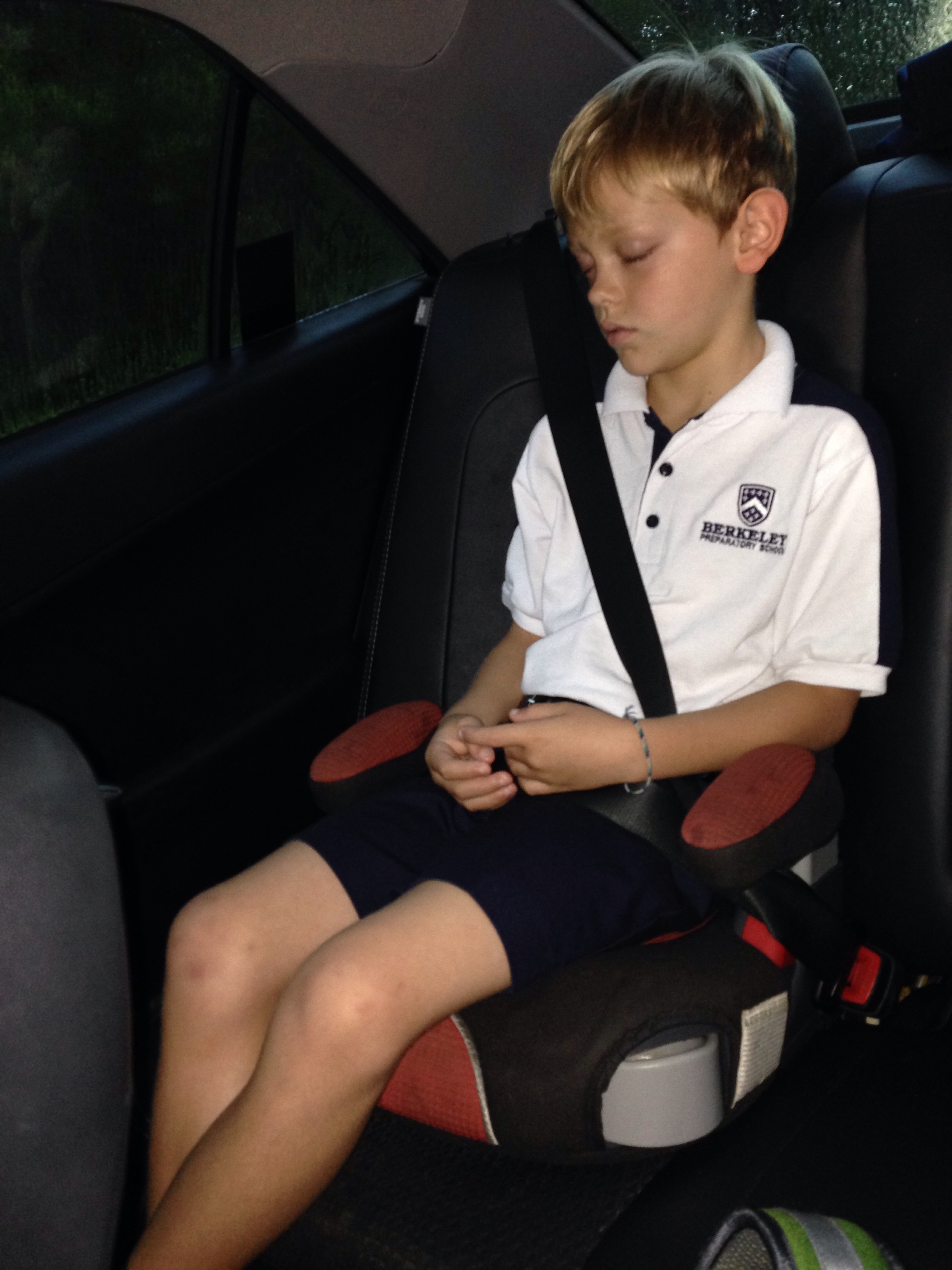This is what happens on the way to school when your child stays up late to read a book and you don’t know about it! Apparently, Davy was really into his Magic Treehouse 150 page chapter book on the Titanic. Andy was excited for him that he wanted to read it, I however felt differently!