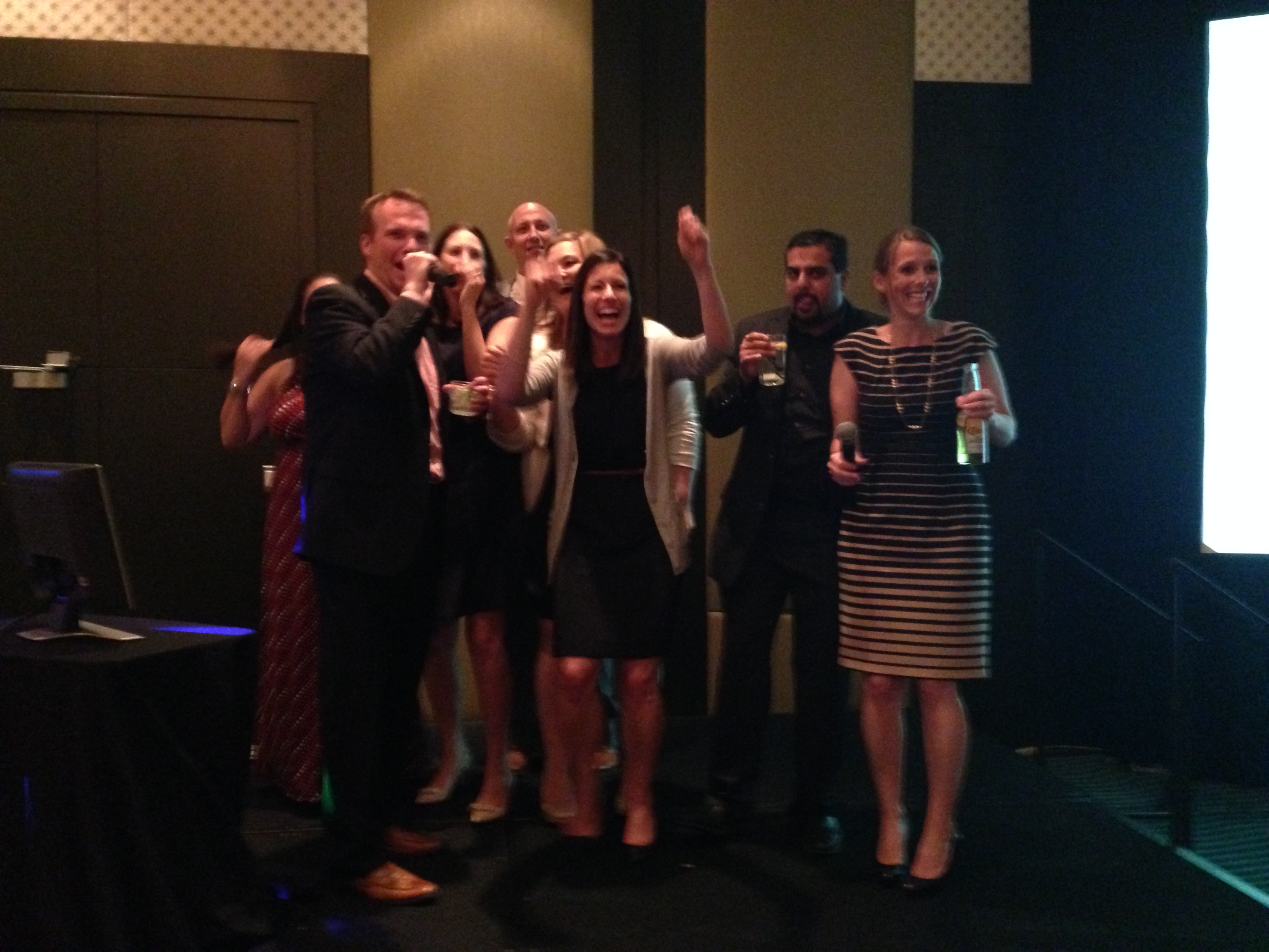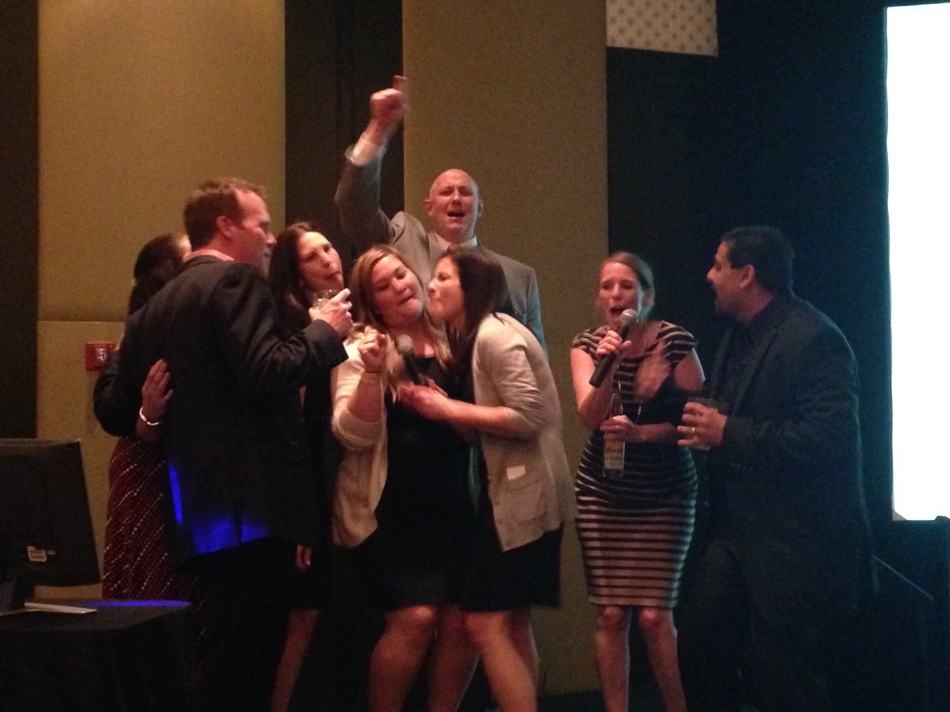 Over the last two days Andy’s entire company has been in town for their annual meeting. Tonight, the spouse’s were invited to close out the week at a banquet dinner downtown at the Hilton. They handed out awards, had a very funny photo booth, and opened up the stage to sing karaoke. The Leadership team even got together to perform for all of their employees… We had a great time…