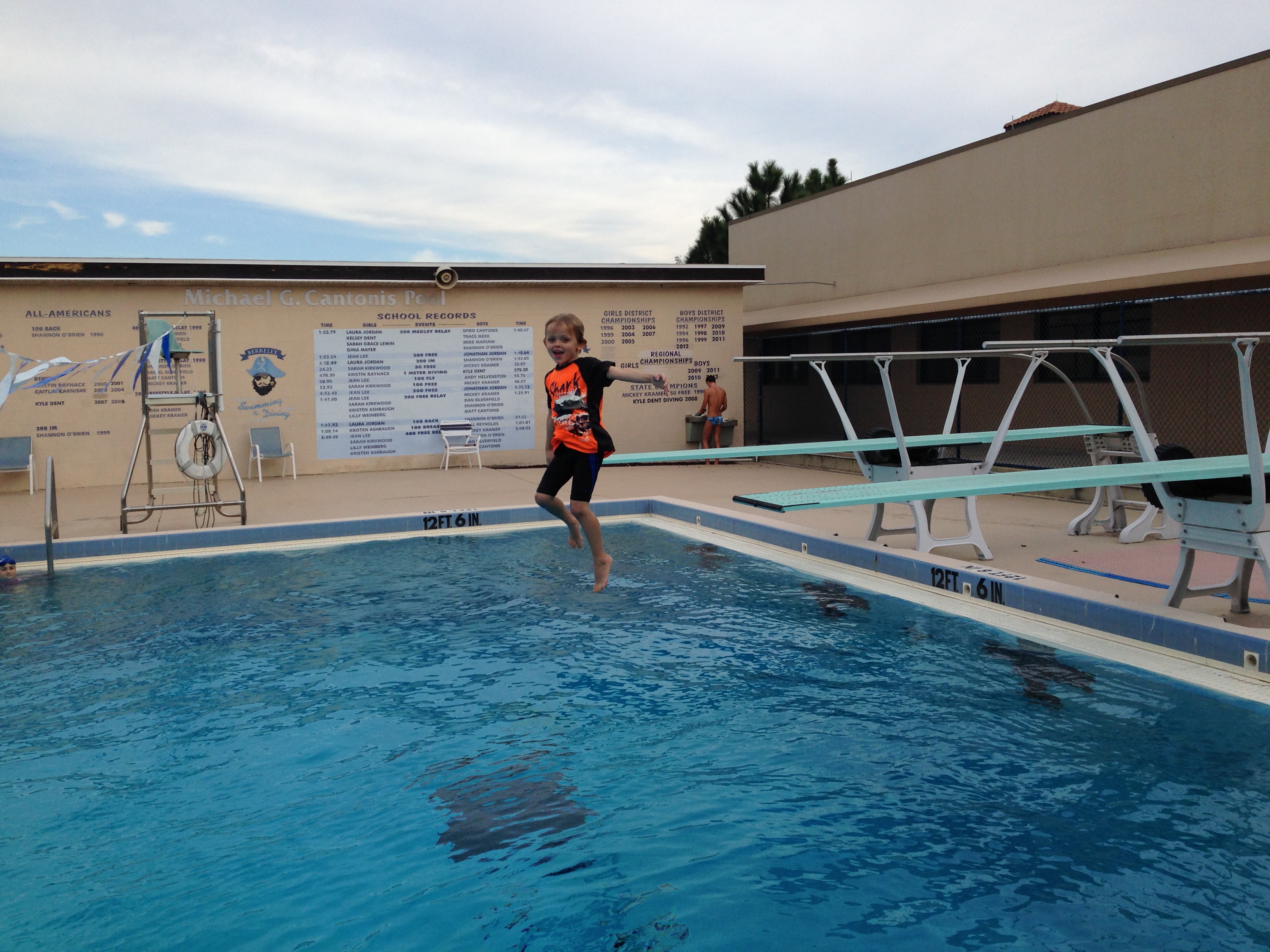Matty’s first day at swim practice. My little guppy is working on his back stroke.