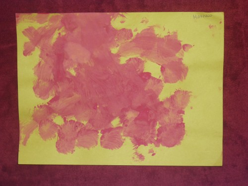 I know that over the years the boys are going to home with a lot of different artwork that they make at school and church…but yesterday in Matty’s preschool class, when I reached into his folder and pulled out his little artwork…only his mother could be so proud… :O)