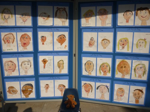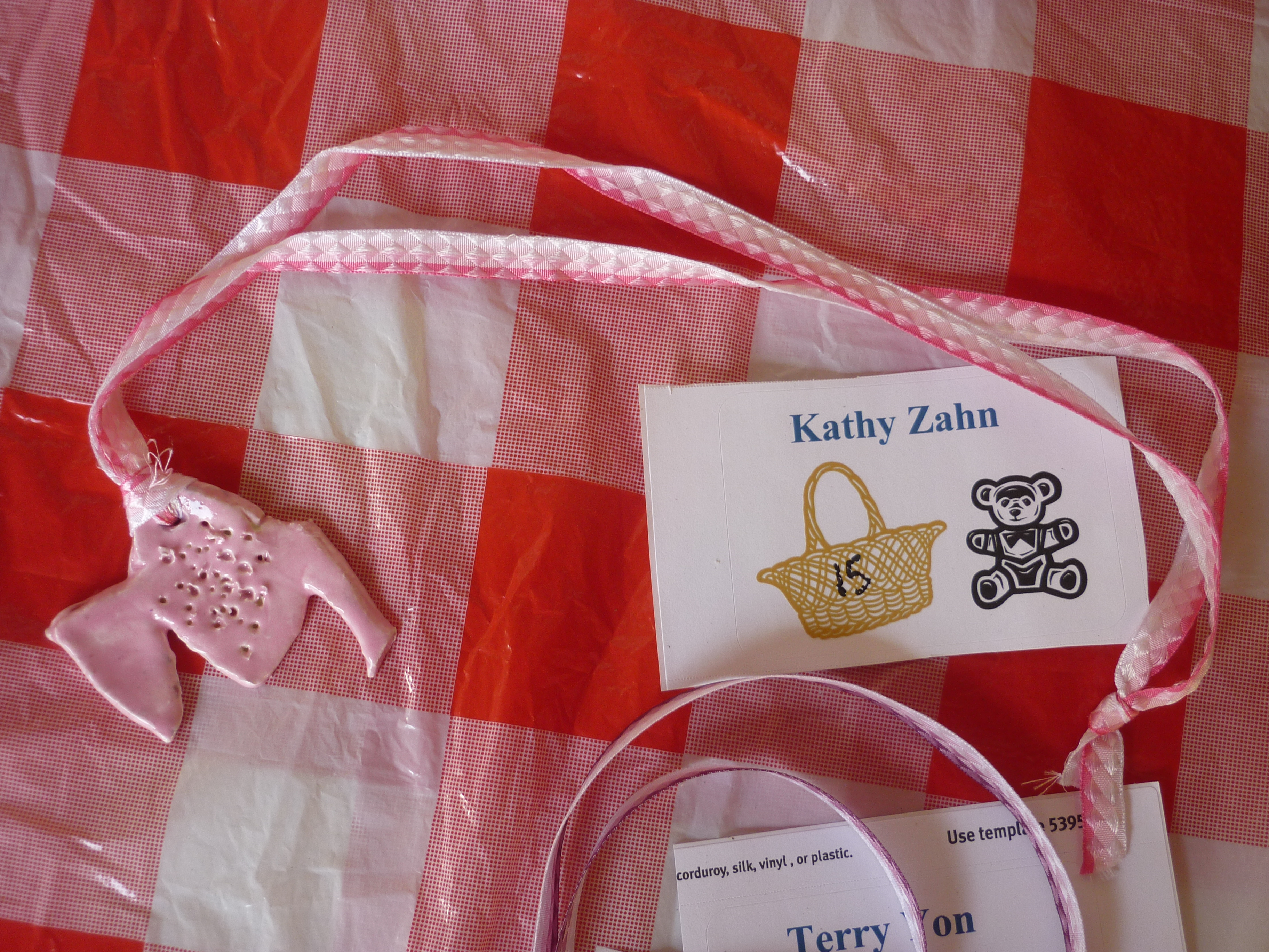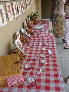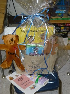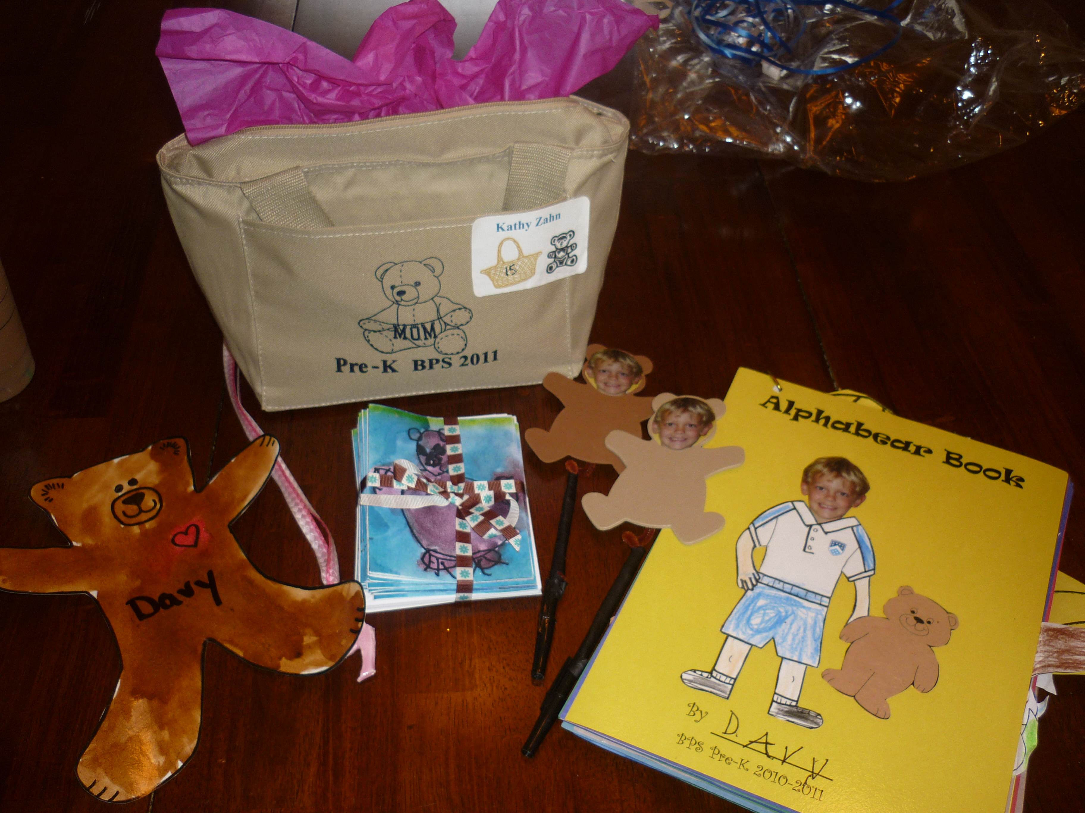 When we arrived at the school, they had us enter from the back. Outside they had set up our name badges, necklaces that the children had made for us, as well as some of the artwork that they had completed over the year. When it was time to go inside, we were all given a gift bag full of goodies that the kids had made. Inside the goodie bag was a thermal tote, an alphabet bear book, homemade stationary, and 2 teddy bear pens.