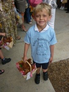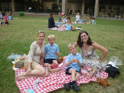 Afterwards, the children were lined up outside with a partner and had a picnic basket all prepared for us. We found our number and shared our picnic with Miles and his mom Angela. It was a beautiful morning and I had a wonderful time.