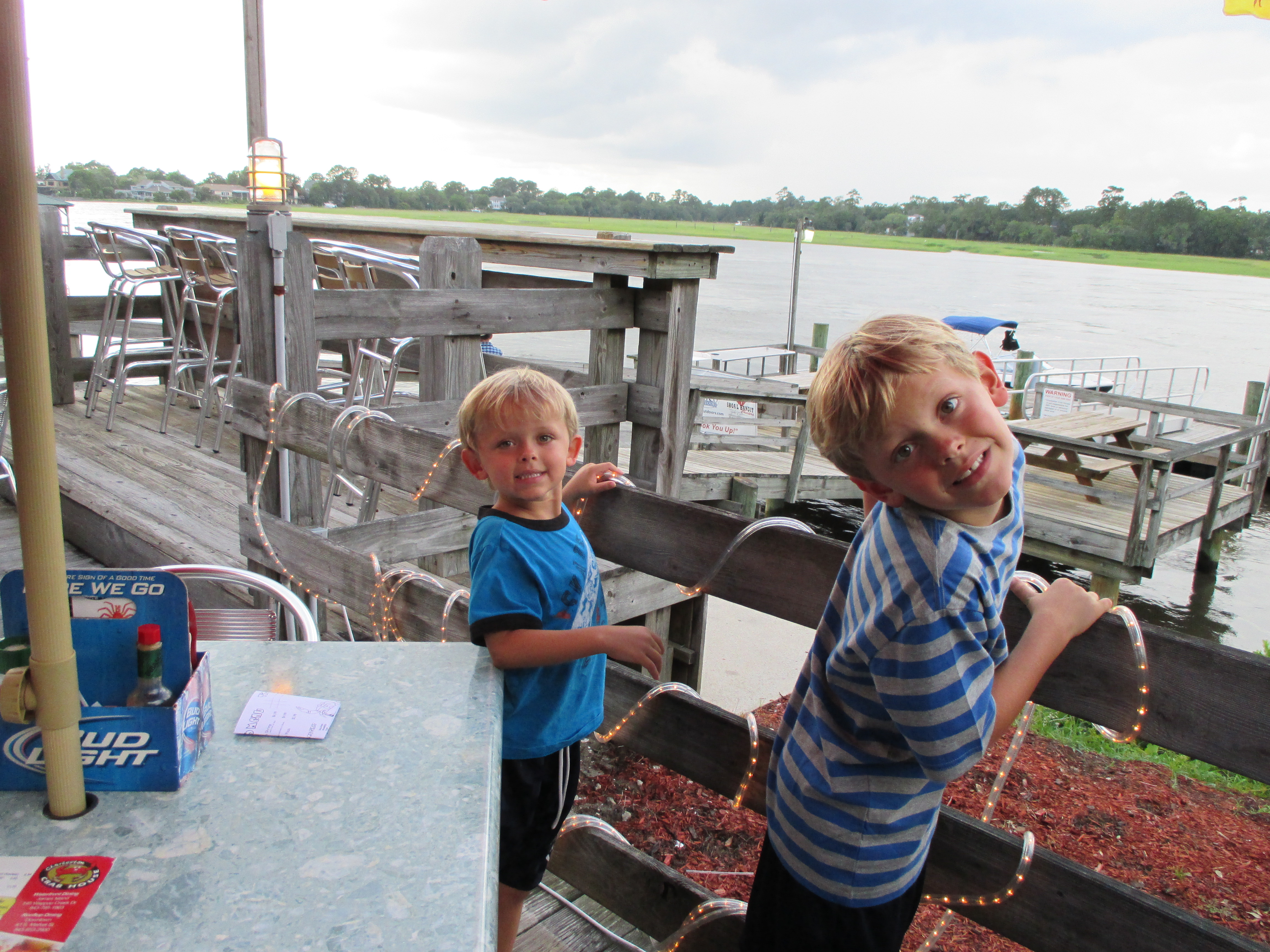 For dinner I thought that it would be fun to eat on the water. There are so many great places to eat here, but this one was close and right off of Folly Rd, so we stopped at The Crab House….Yum! Davy is now officially a fan of crab legs, although he says that I have to crack the legs for him… Crazy kid! 🙂