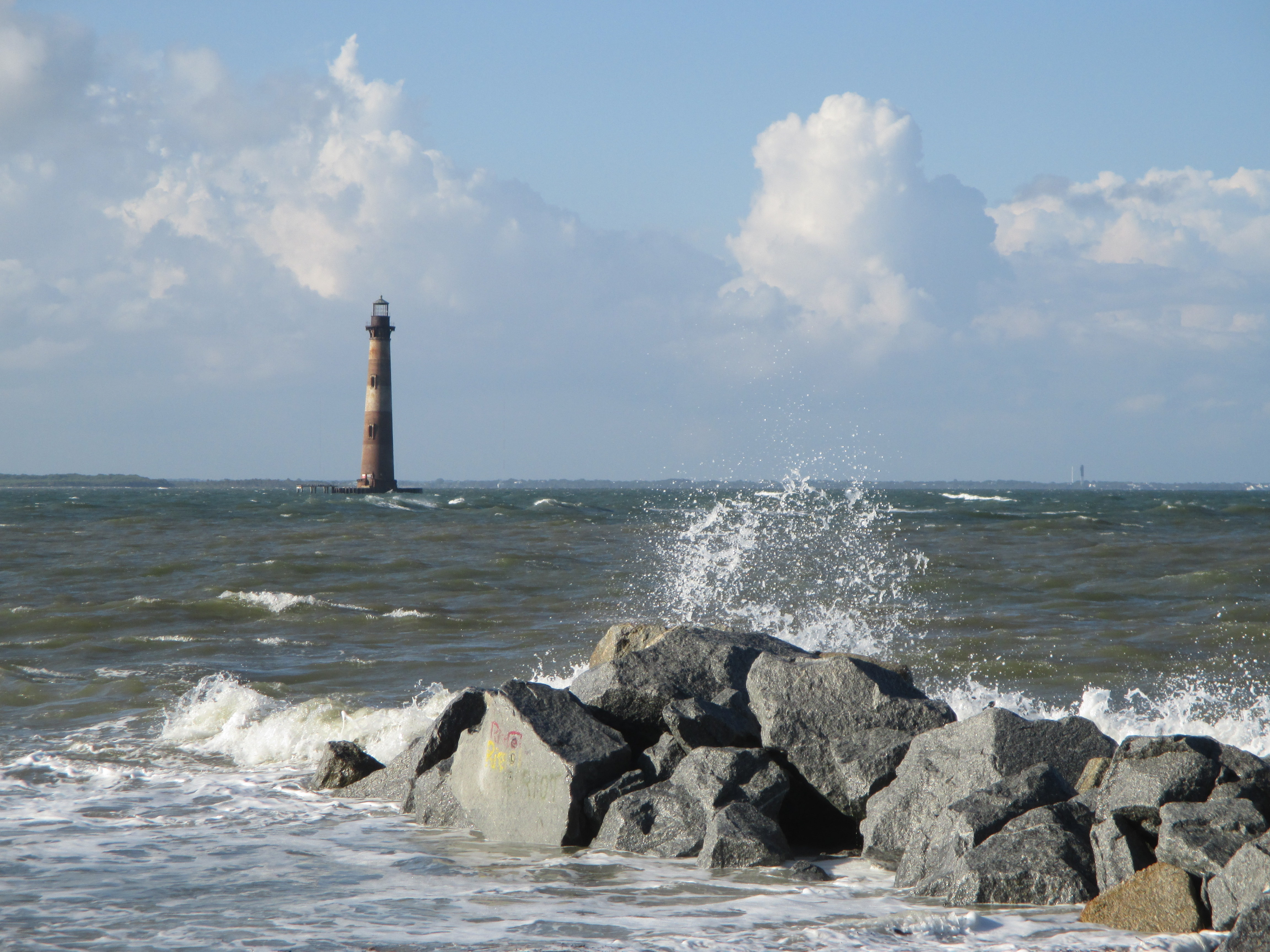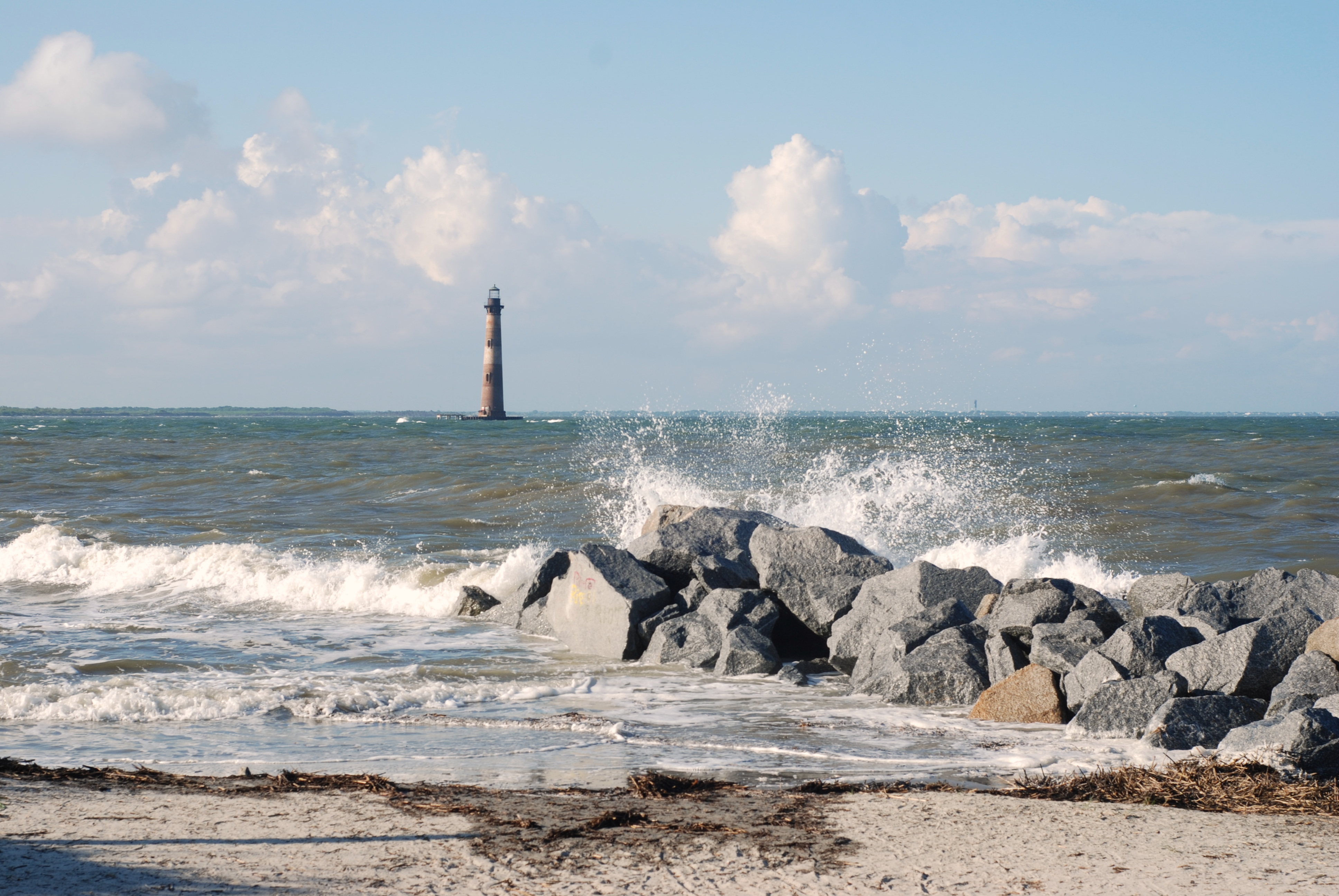 Next stop, Folly beach. Davy and I decided earlier in the week that since we were going to be driving up and down the East Coast, that we would be on the look out for lighthouses. Folly has one on the northeast end of the beach called Morris Island Lighthouse. This lighthouse is registered as one of the Nation’s most historic sites. The first ray of light was cast on October 1, 1876 and it is the third lighthouse to occupy this site. This lighthouse was South Carolina’s only first order lighthouse and is now their most beloved symbol of their maritime past. After 7.5 hours in the car, a trip to the beach to see the lighthouse was the perfect ending to our first day.