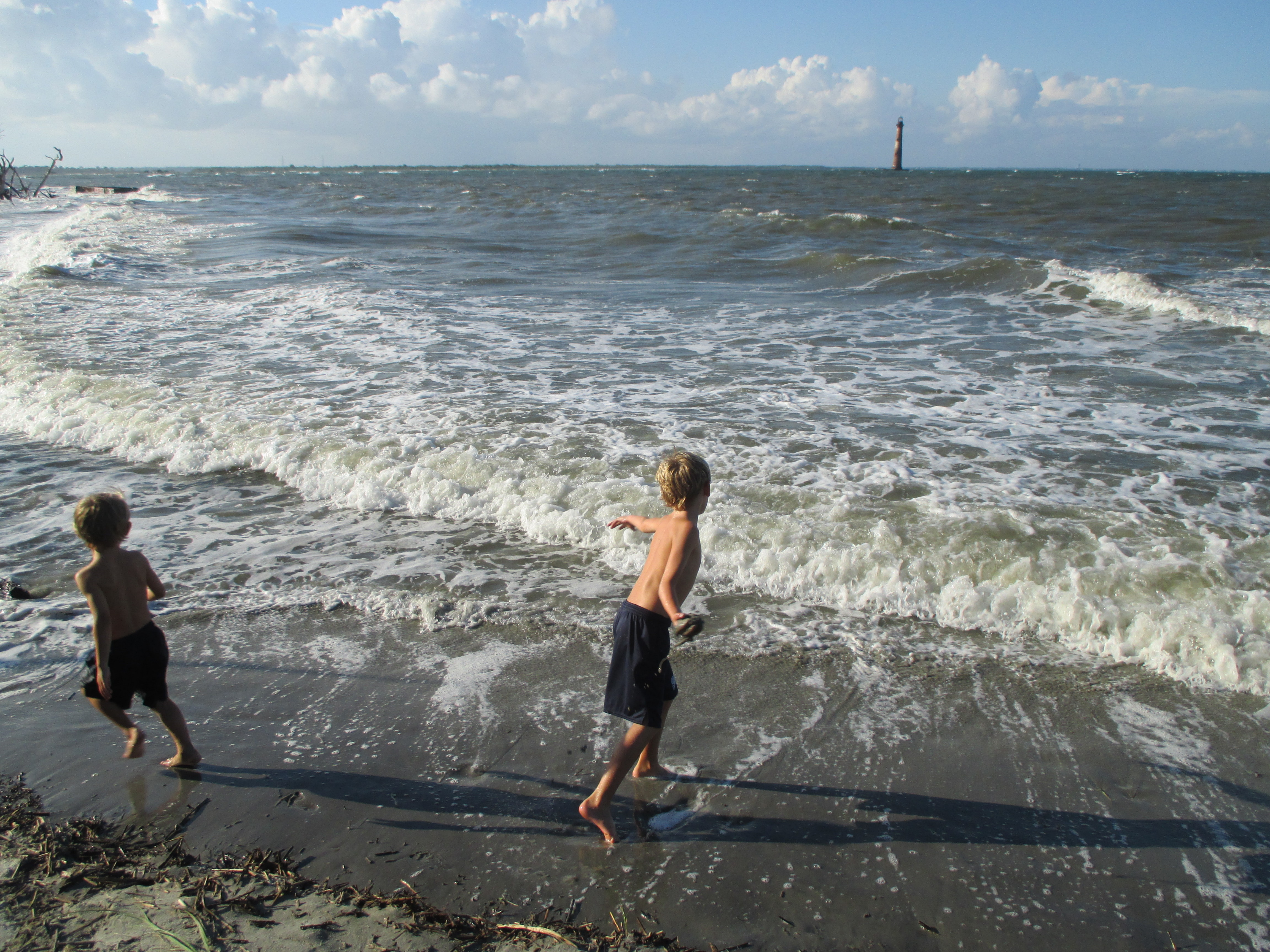 Our next stop was the Cape Hatteras Lighthouse. This lighthouse is right next to our motel, so we thought we would swing by and check it out. Due to lightening in the area we were not allowed up into the lighthouse, so we wandered down to the beach and the boys ran off some of their energy from the long car ride.