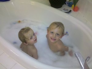 It was a little late and still a little warm, so we let the boys swim in the pool out back.
