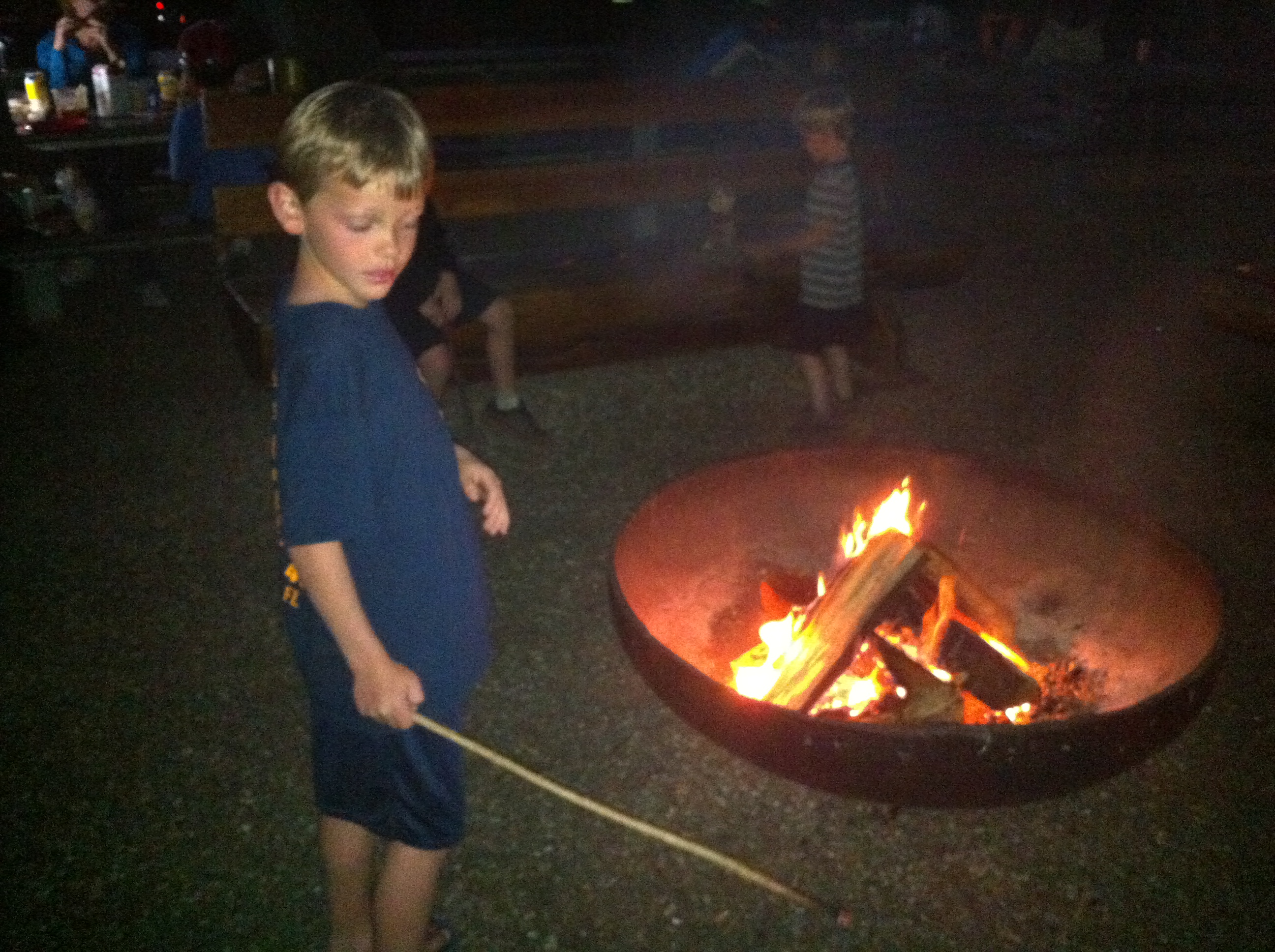 When we got back, the boys wanted to play at the playground, so I ran over to Crockett’s Tavern to grab Andy and I a beer. I picked for him one called Napa Smith, an organic IPA, and Andy said that he officially thinks that this is his new favorite beer. For dinner back at the campground we had Jack Daniels BBQ pork sandwiches, baked beans, corn, apple sauce, and smore’s.