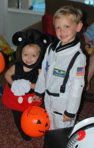 This year for Halloween, Davy decided that he wanted to be an astronaut and Matty we dressed as Mickey mouse. Davy loved his costume and wore it for days… Matty surprisingly loved his too. He was just as proud of his costume. He got a little frustrated that he couldn’t get his gloves to stay on, but he wore his Mickey ears, which squeaked, the entire night.