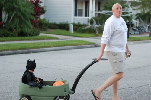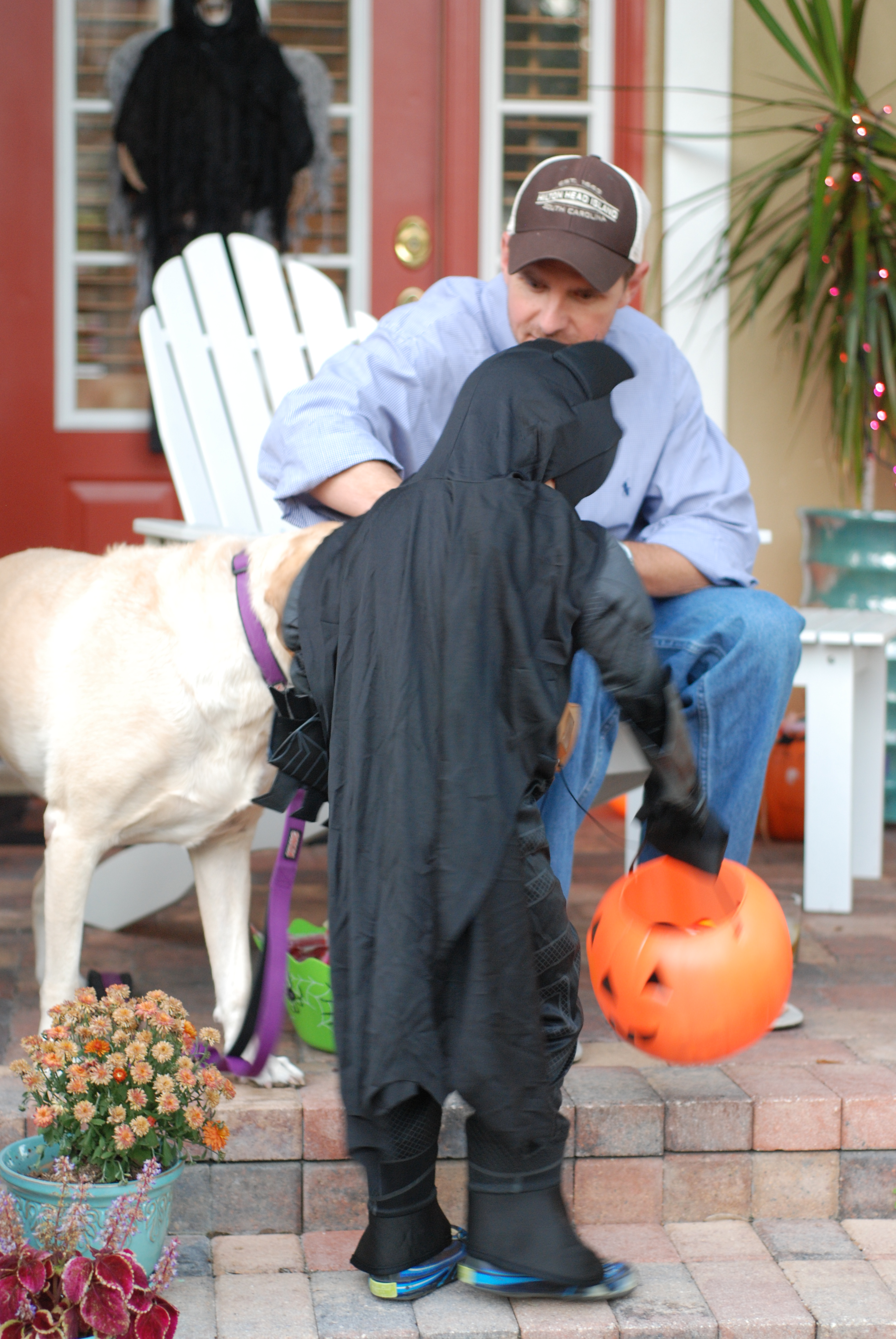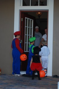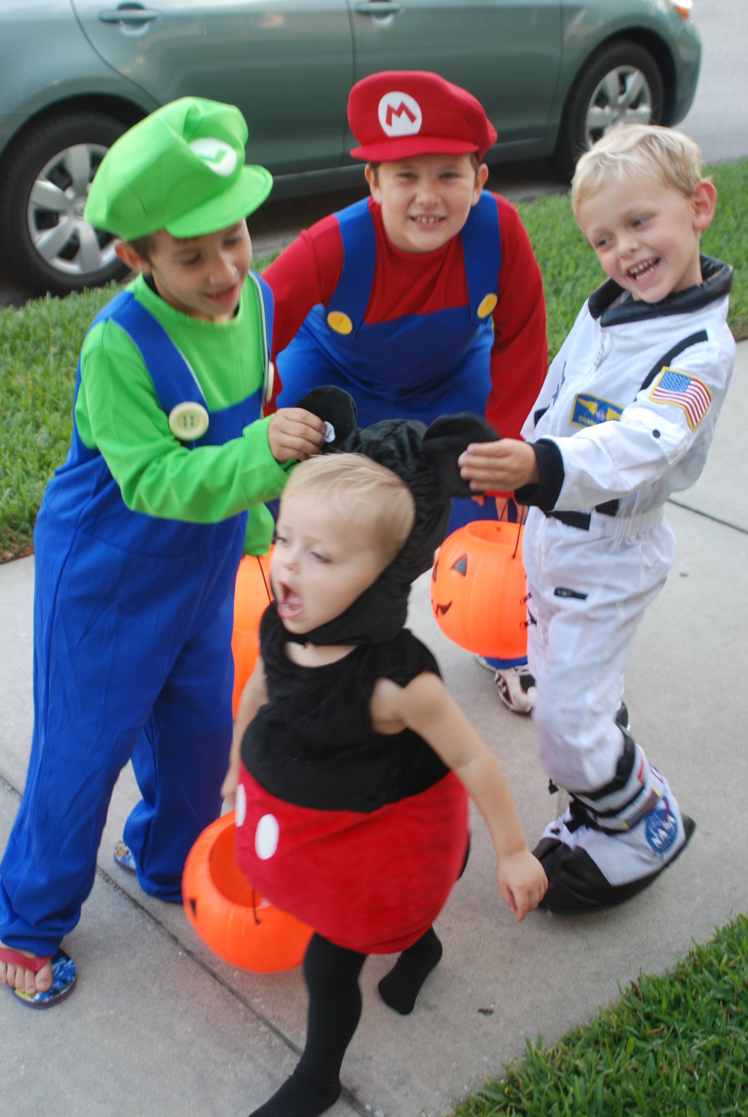 Mom, Courtney, Andy’s Dad, and Mr. Michaels all came over to see the boys and to spend some time with us. For dinner Andy grilled hot dogs and hamburgers for everyone, including Colin and Connor. It was a perfect, delicious dinner before we headed out to get some candy. Colin and Connor dressed up as the Mario Brothers and Emma was a ballerina.