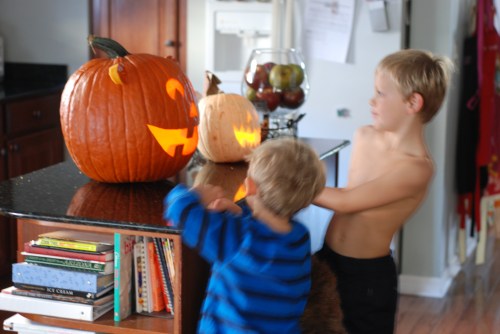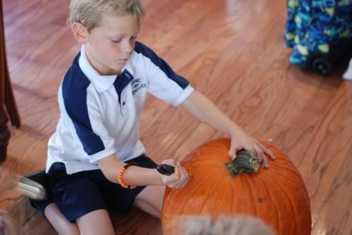 Tonight we were invited over to the Alvarez’s for a Pumpkin Carving Party. The boys were super excited and had a wonderful time playing with their friends. Us grownups… we enjoyed a relaxing evening of great food, great company, and a little Alabama football…