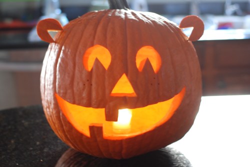 This year when it came time to carve the pumpkin we had to take a vote: Happy or Scary. Davy and Daddy voted for Scary and Mama, Matty, Molly, and Granny voted for Happy. And we have a winner…