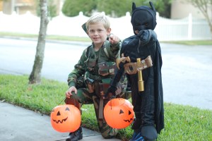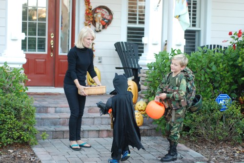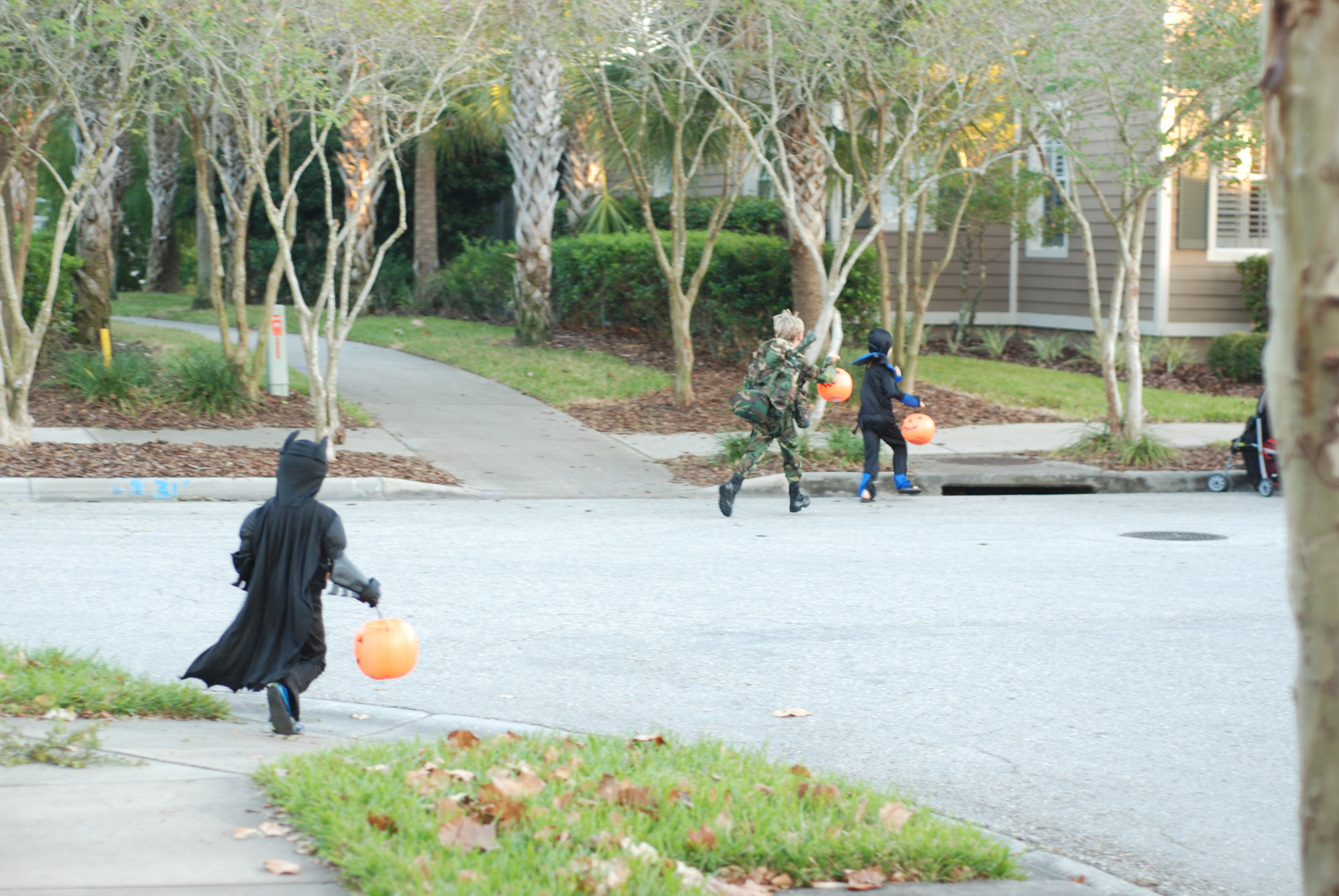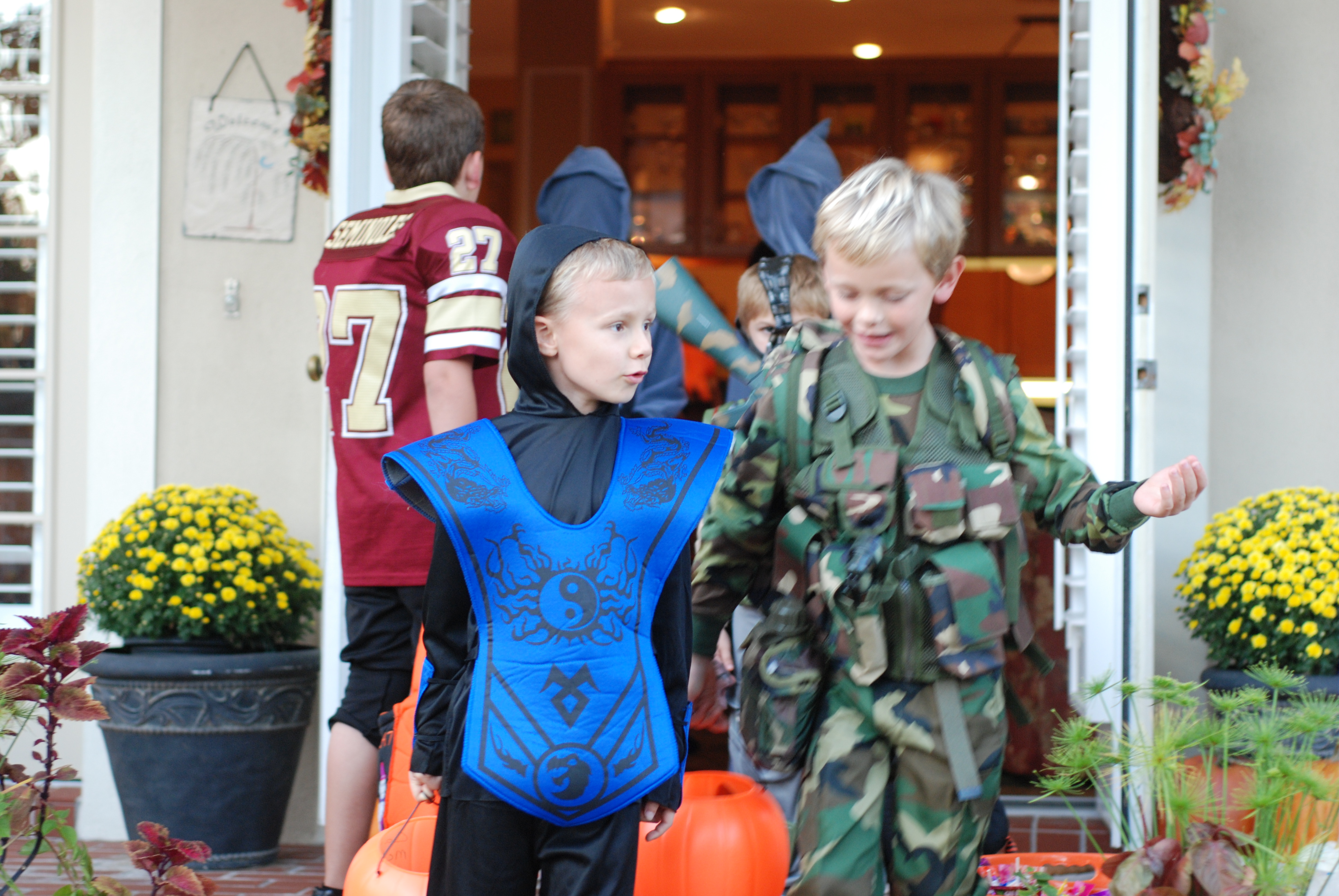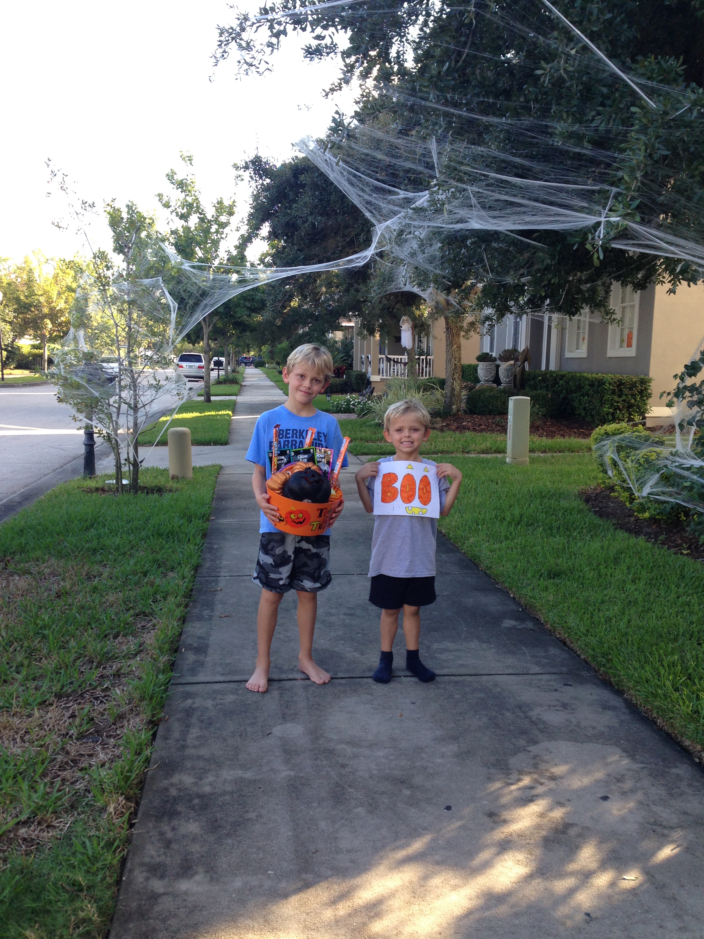It’s our 4th Halloween here and we couldn’t be more excited to go trick-or-treating. Granny came over to see the boys and help pass out candy. We started at Ms. Debbie’s house next door and we were on our way. Very quickly we ran into Caiden and the boys decided to go together….