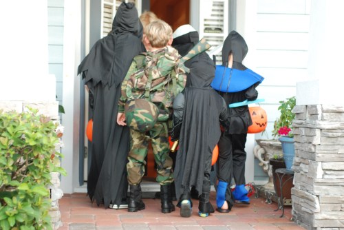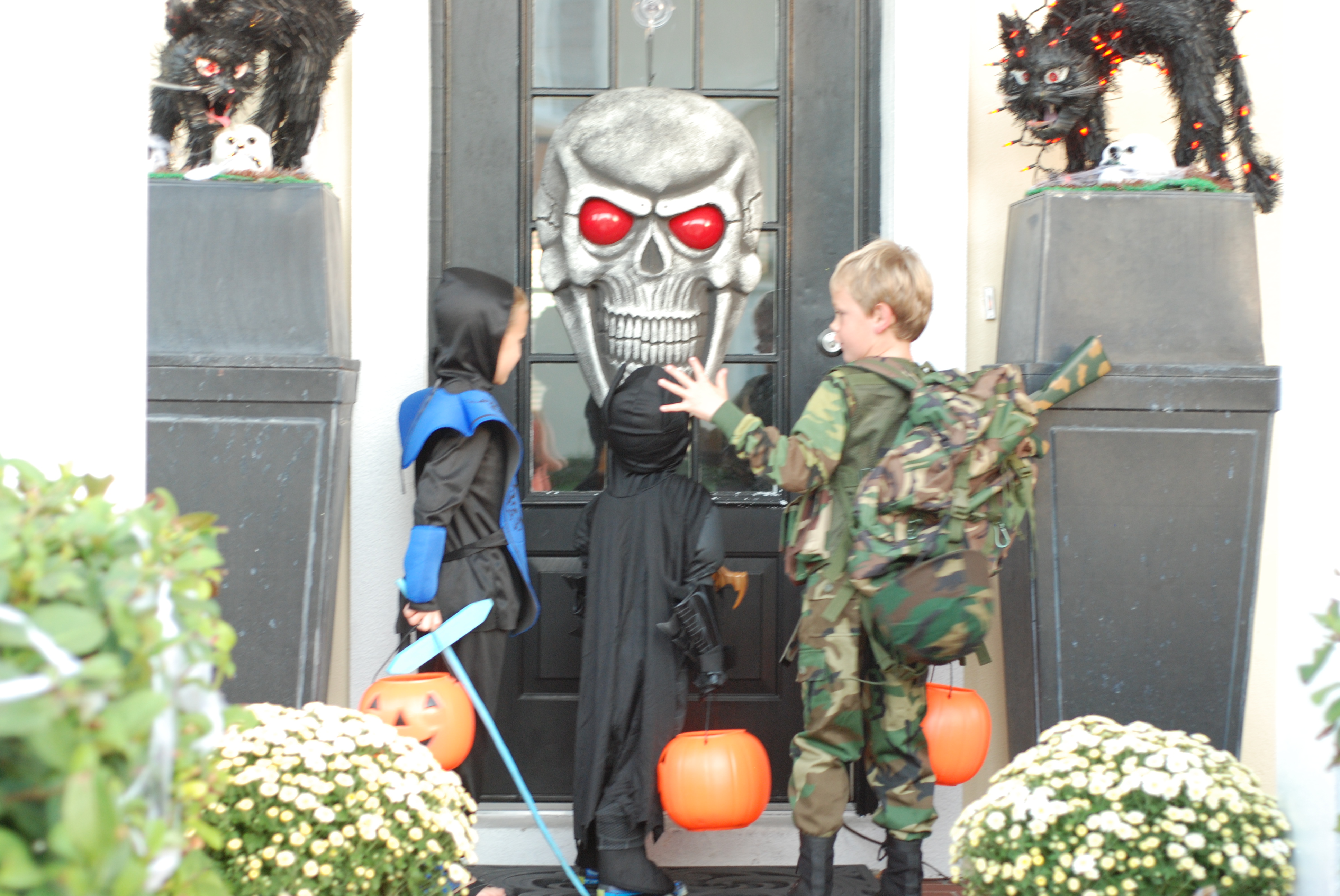 After a full day of rain and waiting, the sun finally came out and the children excitedly got dressed…it was time to go Trick-or-Treating!!! Since Friday a few things have been lost along the way: Matty’s hook, Davy’s sunglasses and tie. They didn’t care though, at this point it was all about the candy. At about 5:30 Colin and Connor came over and we knew then that not many were going to make it to six. I was lucky to get a few photos before they ran out the door. Once again, here is my OSS Super Agent Kid Spy and Captain “Matty” Hook!