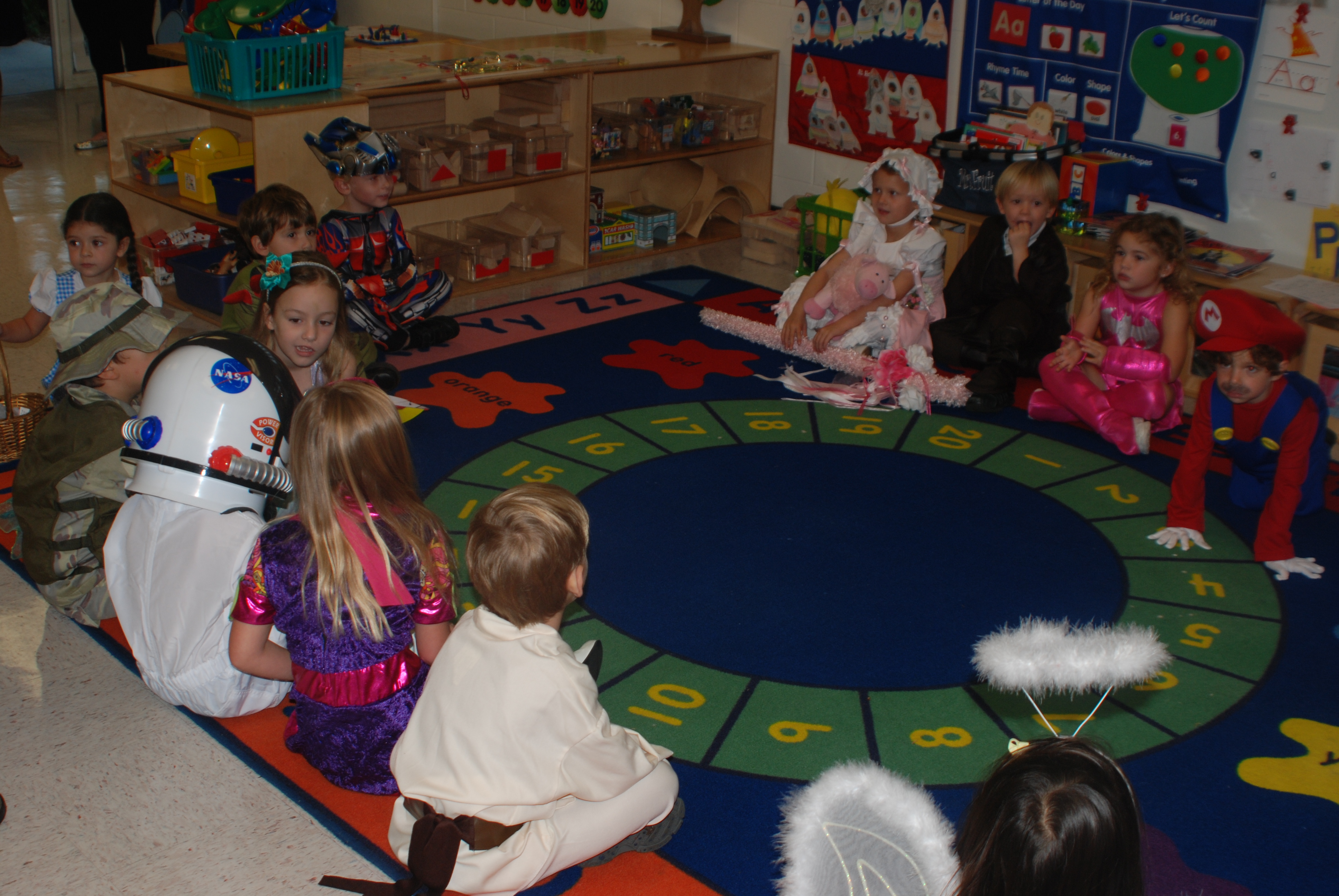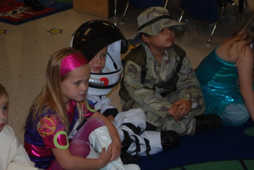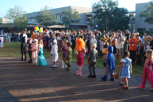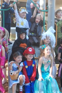 Every year the lower division at Berkeley hosts an annual Halloween Costume Parade. The children line up in their classes by grade and parade around the mound to fun spooky music. After all of the grades have entered, each one is presented to the parents for photo opportunities and then they parade out. Here are all the children in Ms. Fruit’s class… Afterwards, the children get to have a special party in their room…. But of course, no parents allowed…