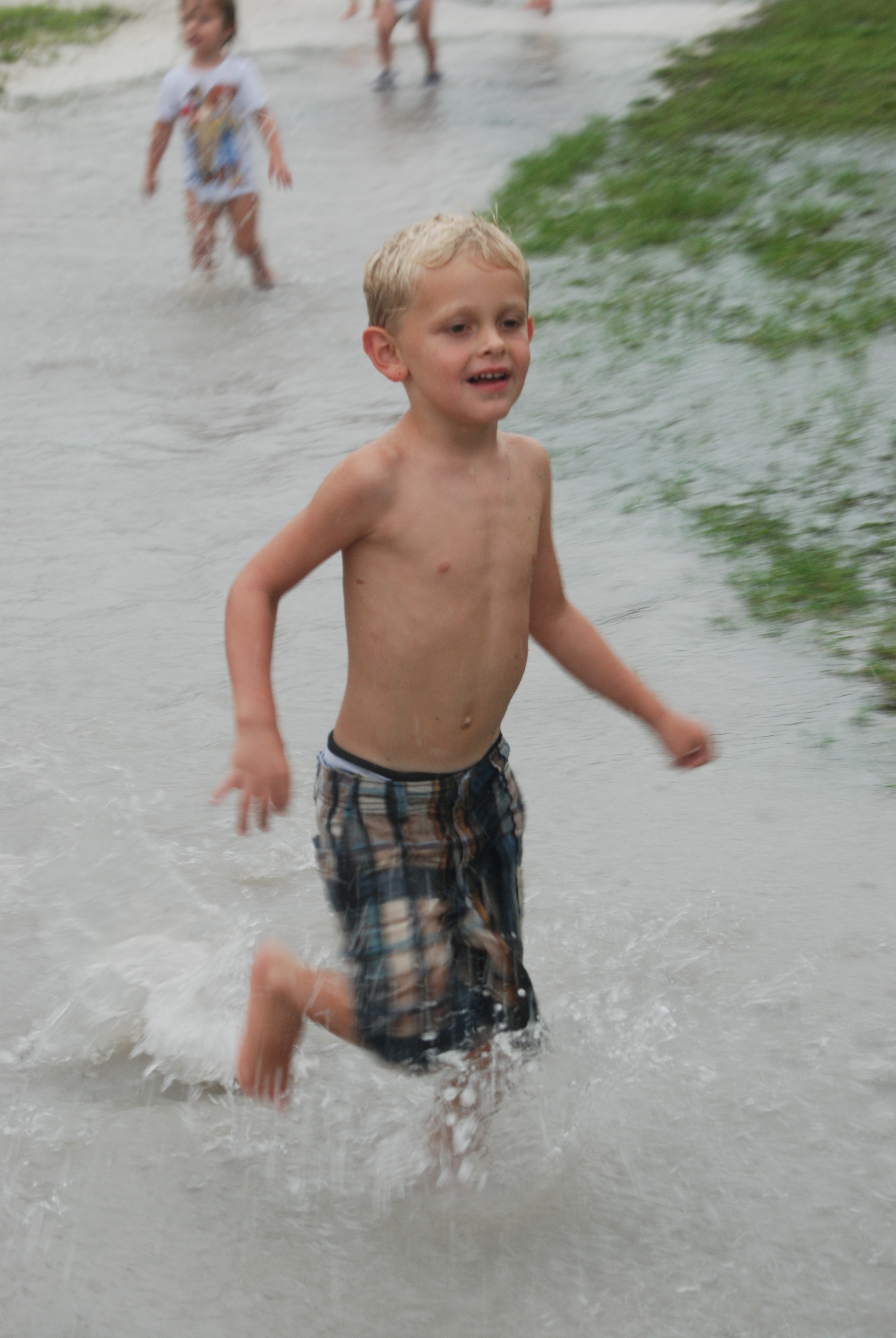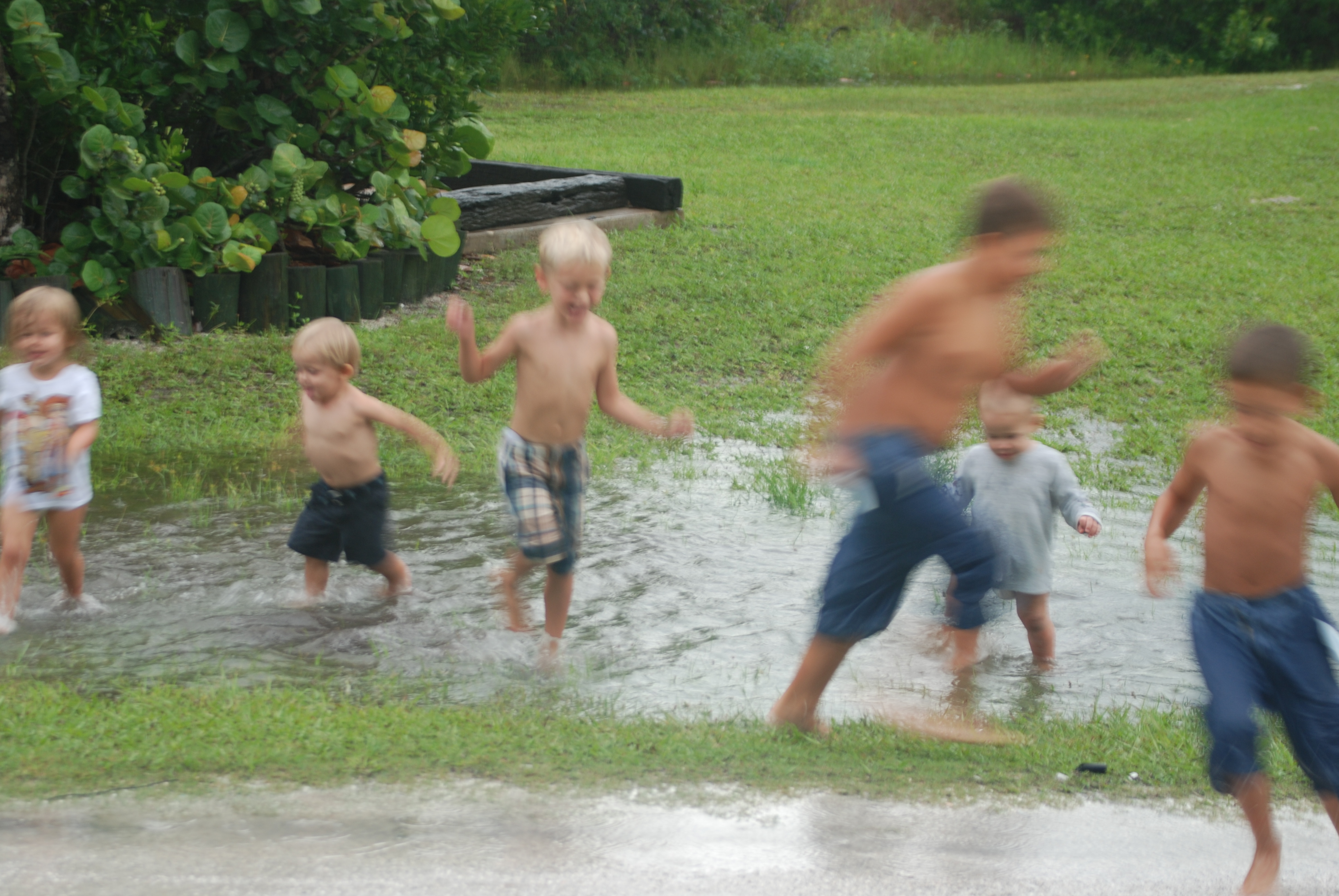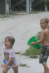 We had been watching the radar on the The Weather Channel and it didn’t seem as if the rain was ever going to stop and the children just needed to get out and run…so they did! They danced in the rain, played chase and tag, made new friends who came out to join them, and gathered up buckets to have a water fight.