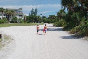 Here Davy and Connor are walking from the condo over to the boardwalk that leads out onto the beach…