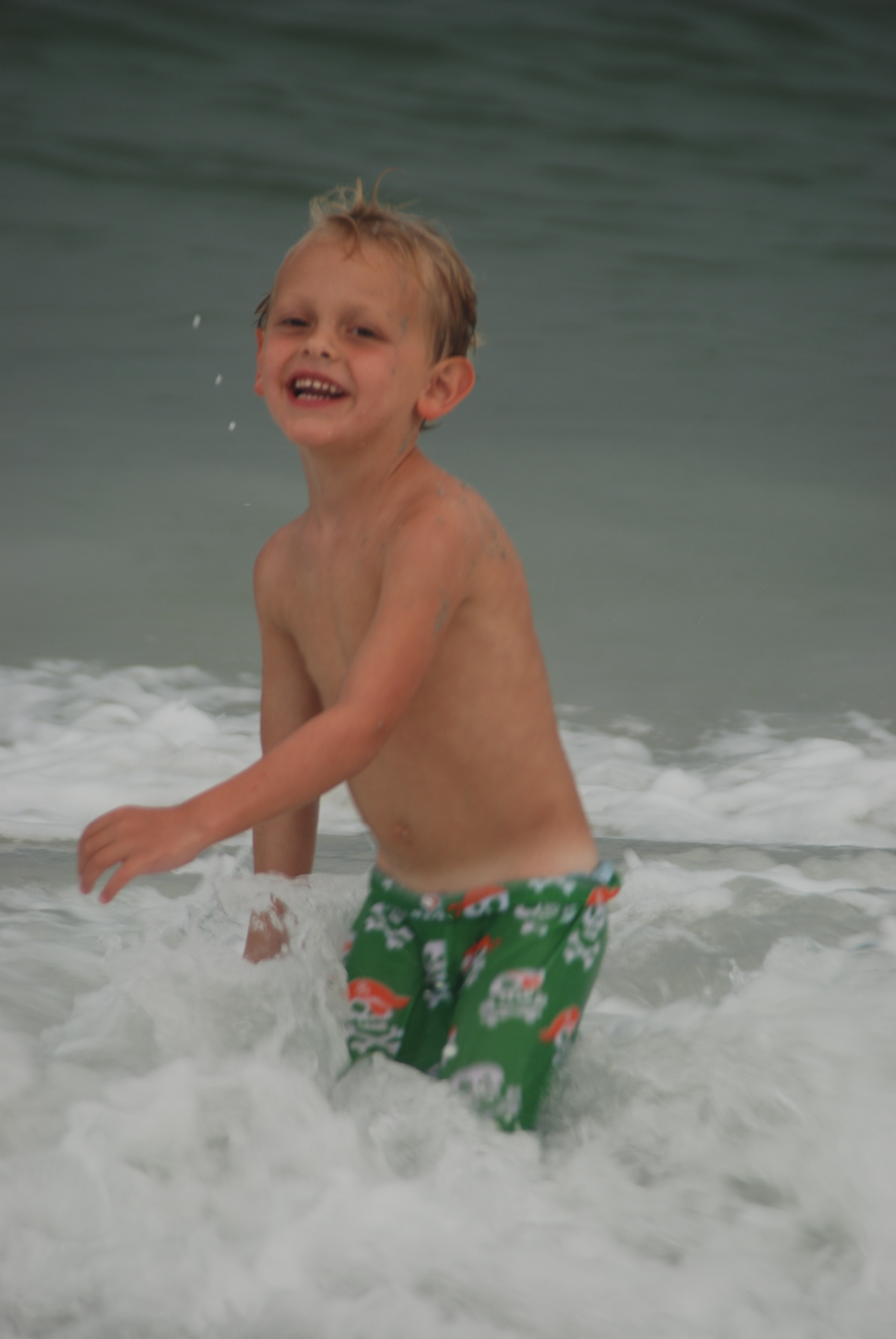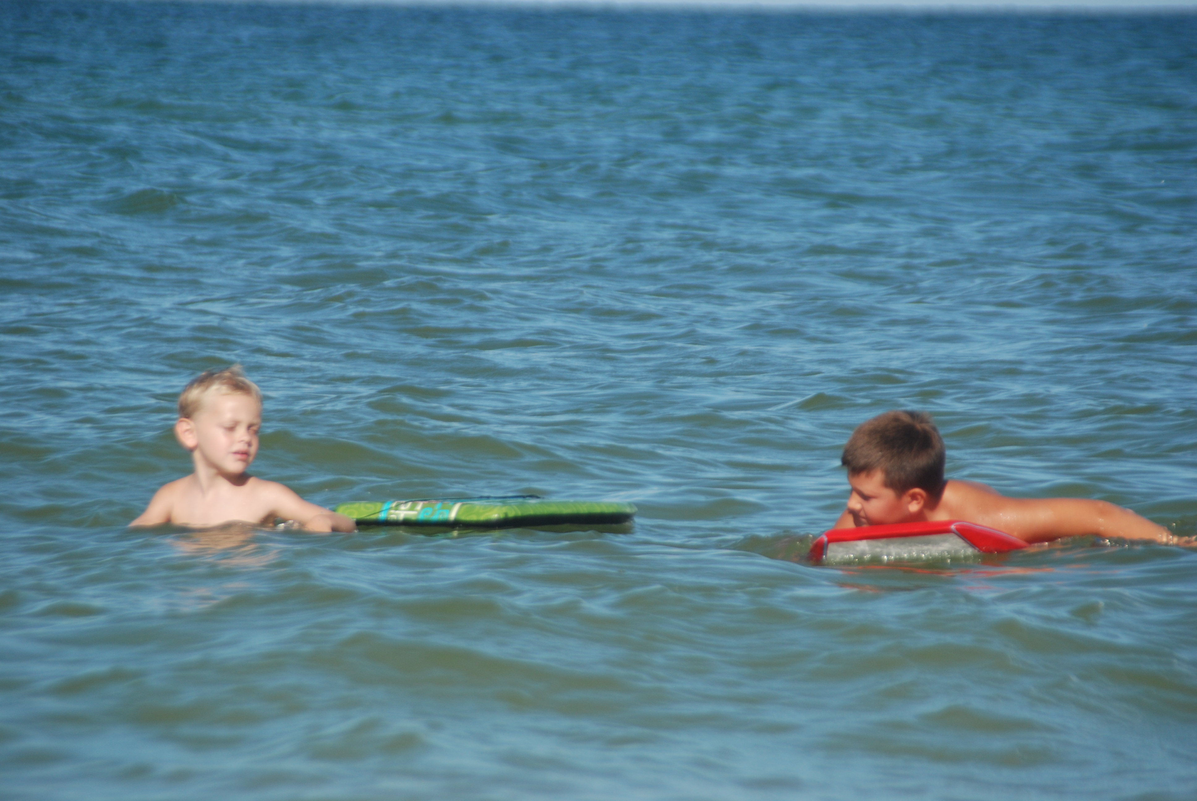 Davy, Colin, and Connor loved riding their Boogie Boards! They rode them for hours. The only problem that we had was after riding the waves onto shore they were to far down the beach and we would have to call them back…