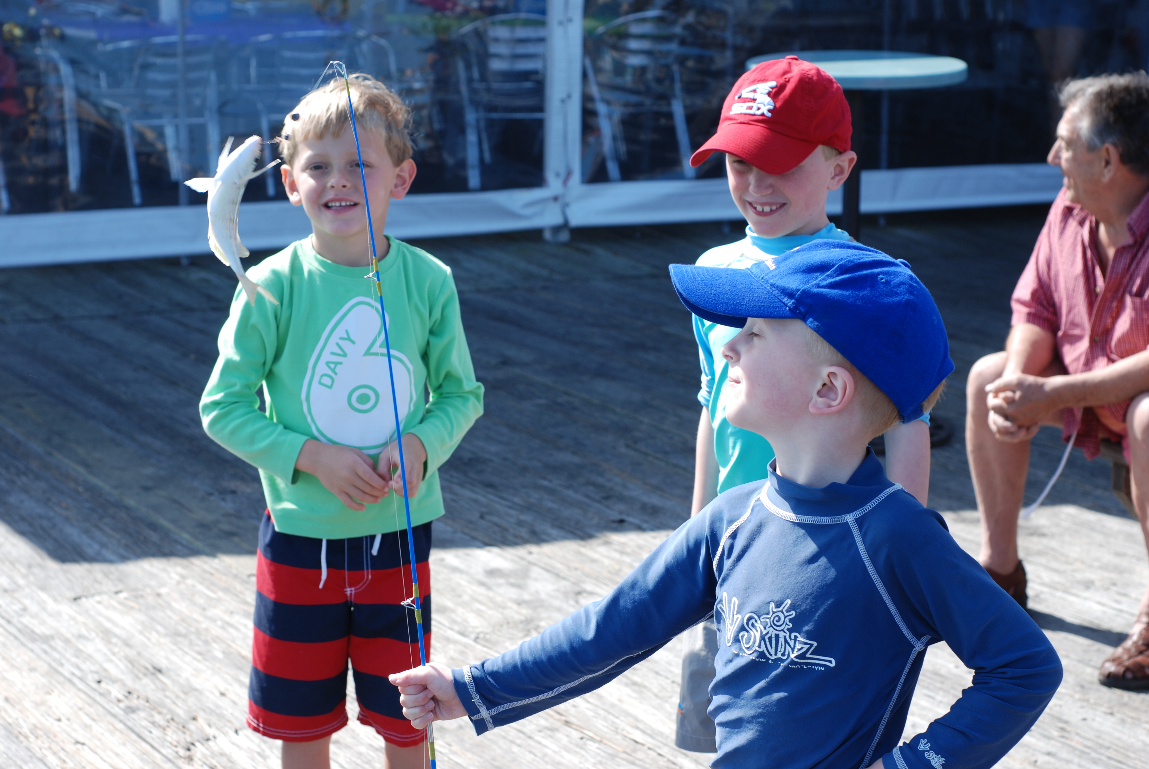 We fished for about an hour, only two of the four poles were working and for whatever reason we only caught two fish. The first one I caught with in seconds of tossing in my line, and the second one Charlie caught. He was so proud. The bravest of the five boys was Emmett. He liked to pet the fish.
