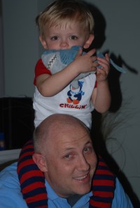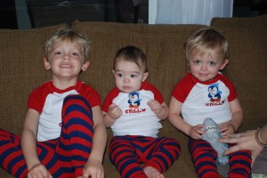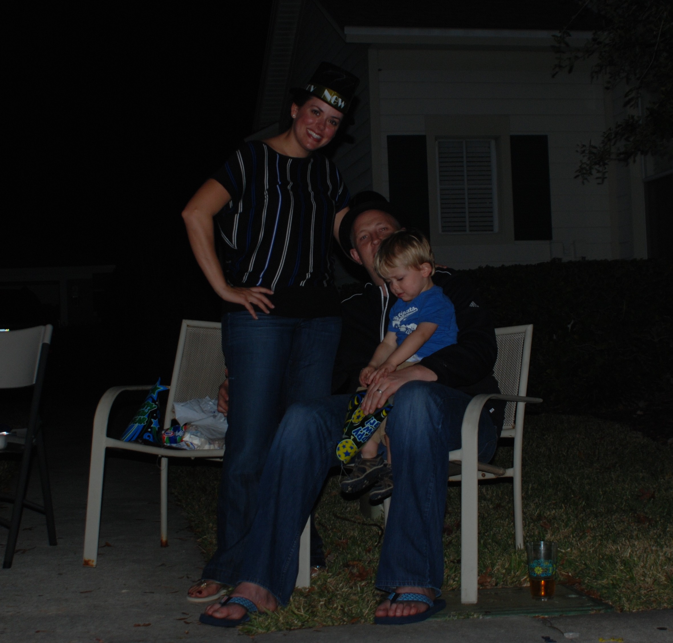 We walked down to the field and let them play chase for about 20 minutes in the dark. We could barely see them, but we could hear them giggling and laughing. Also, all around us we could hear fireworks. Not the small kind either, the big ones. A lot of people were out and it really was a great evening. They went home and we popped open the Champagne. Davy stayed up the entire evening with us. At about 11:30 pm more fireworks started to go off so we snuck out the back of our house, cut through some trees and sat in the grass on the 6th hole tee box. We could see fireworks in 3 different places, it wasn’t to cold out, and it was just perfect. Andy ran inside to get Matty so the 4 of us could sit together and stare out over the pond. At about 10 till we came inside, climbed in the bed and waited for the ball to drop. I can’t believe that it is already 2010. As Andy so kindly pointed out, we will have officially lived in 5 different decades: 70’s, 80’s, 90’s, 2000’s, and teen’s. Nothing like making me feel even older… The ball dropped, we gave each other big big big kisses and then all of us went off to bed. Davy slept in the little bed and Matty in his crib. Hello 2010!!!