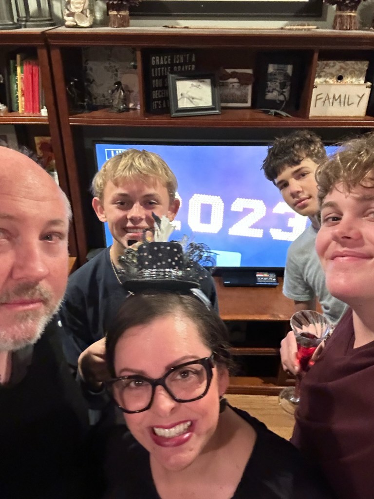 Matty lasted until about 9 and Davy made it until 11…he tried. At 11:45 we woke them up, toasted with some bubbly, and watched the ball drop to bring in the new year. This is mine and Andy’s 15th New Years together…love him.
