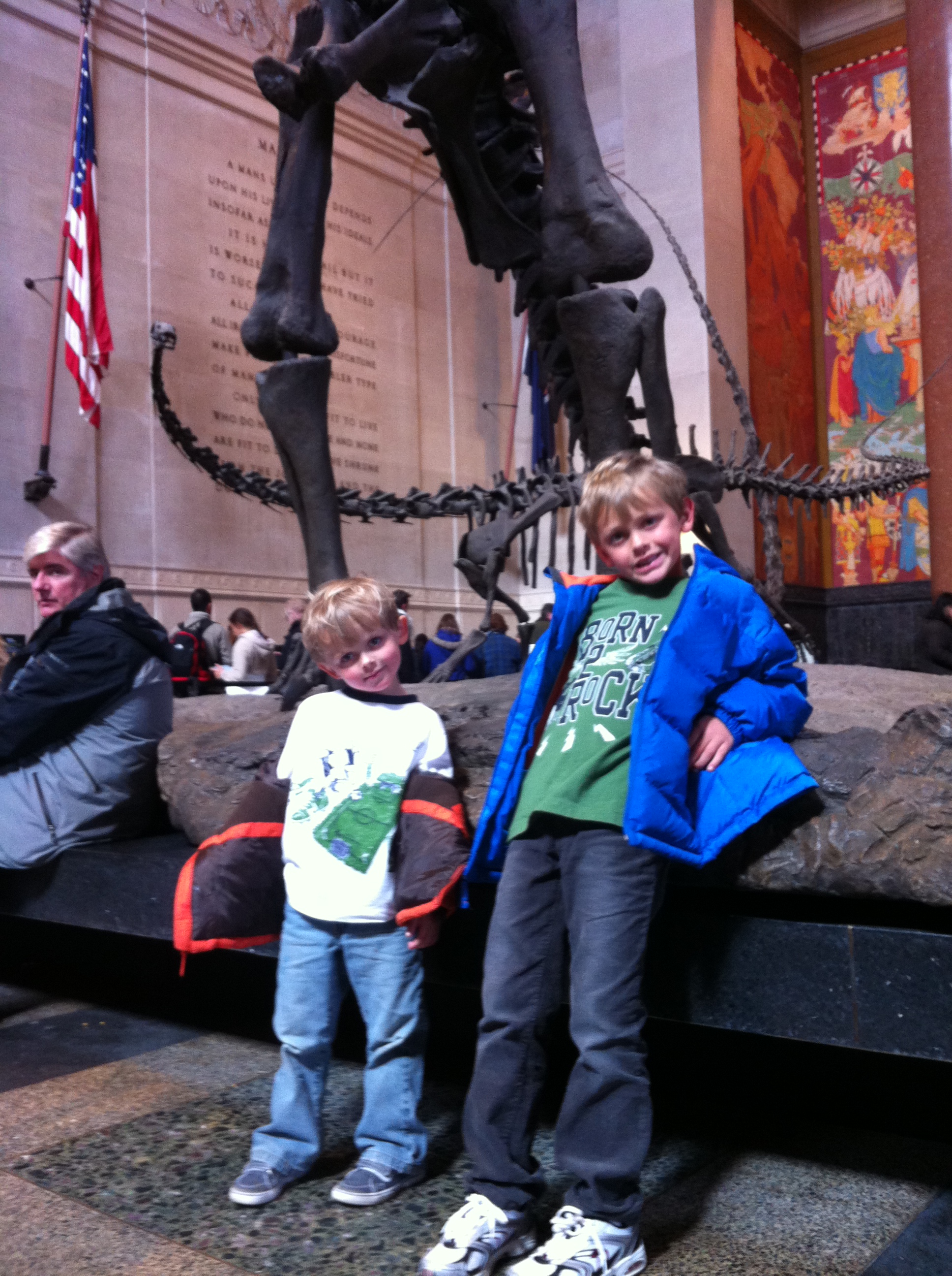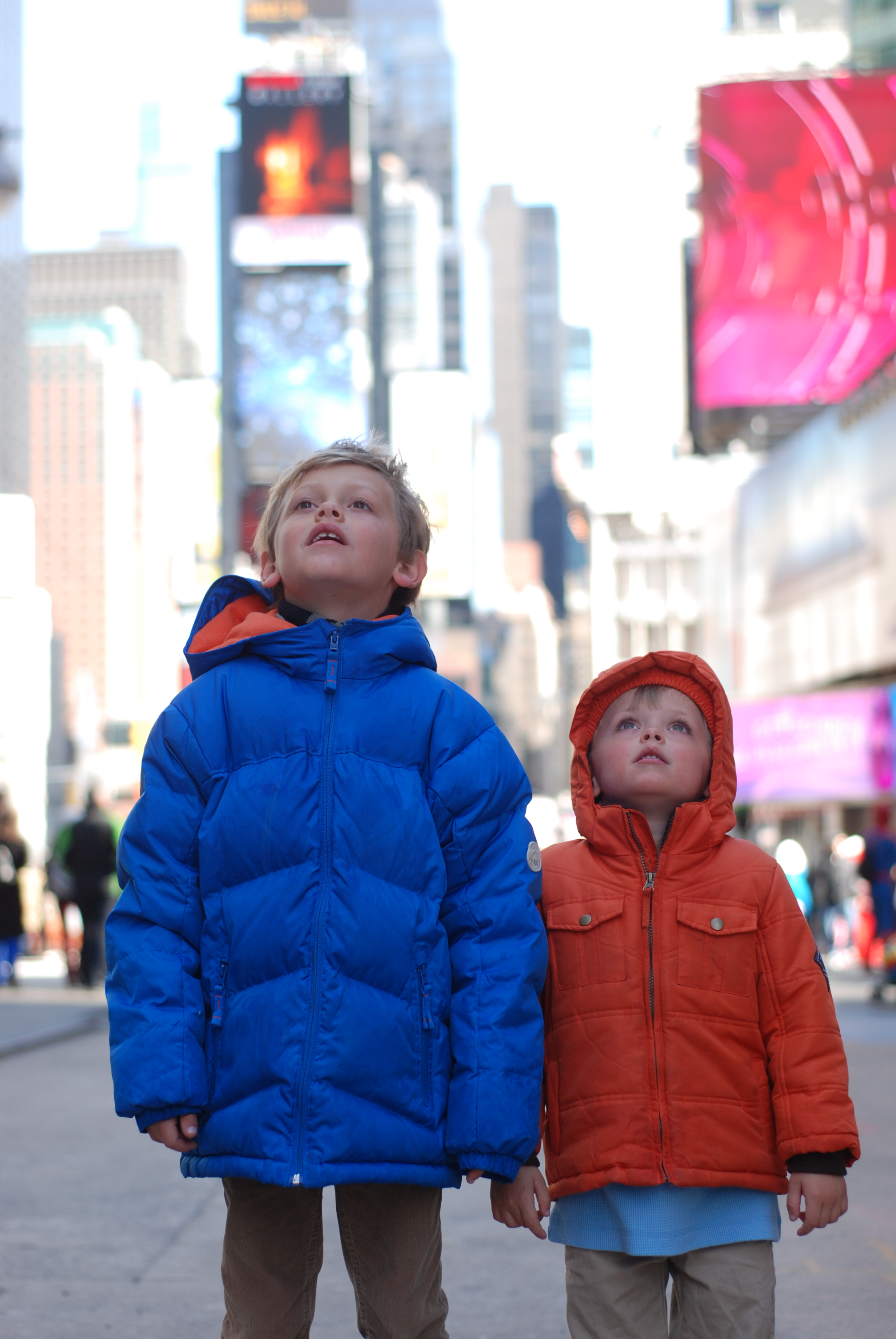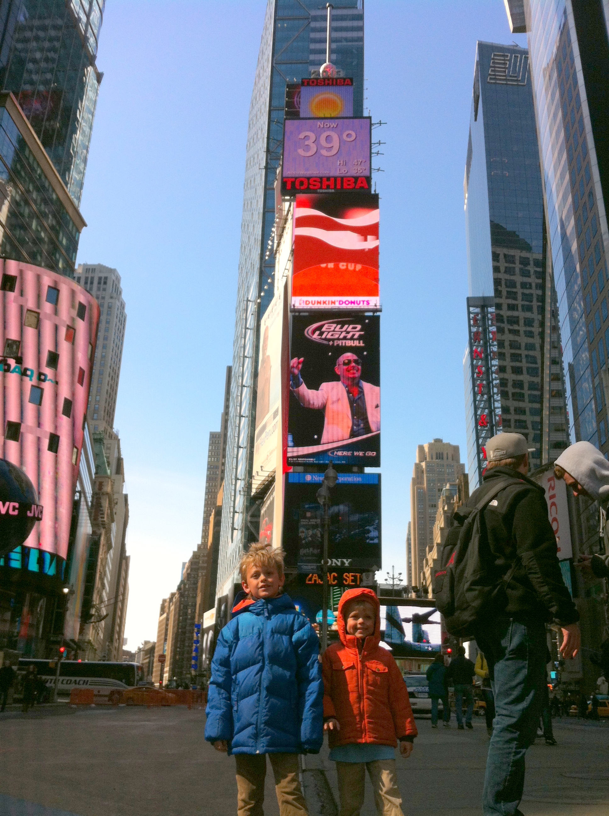 Day 5! Today we headed back into the city to take the boys to see Spiderman on Broadway and to visit with Matt and Ted. Instead of ordering the tickets online, Brandie saw that if you arrived before the box office opened and stood in line you could get $39 seats until they were sold out. Sounds good to us! We hopped off the subway at 42nd, crossed the street to Foxwoods Theaters, and arrived at 11am with the ticket booth opening at noon. Matt and Ted came to meet us in line while we waited. The boys and I wandered around the corner into Times Square so Davy could see the New Year’s Eve ball, Matty helped himself to a vendor hot dog, and Brandie, Ryla, Matt, and Ted ventured off to get us some Starbucks. Before we knew it the line was moving, we purchased our $39 tickets and were super excited to land front row Mezzanine seats.
