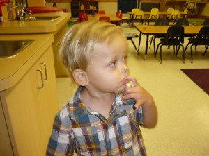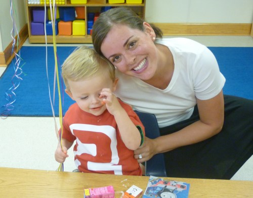 Although Matty is only 21 months, Ms. Nightlinger went ahead and placed him in the young 2’s class. I felt relief over this because Matty is so smart and we don’t want him held back in any way. This is his classroom and his teacher Ms. Pagan, his other teacher is Ms. Santos and the two classroom helpers are Ms. DeJam and Ms. Diaz.