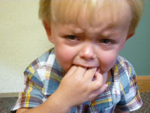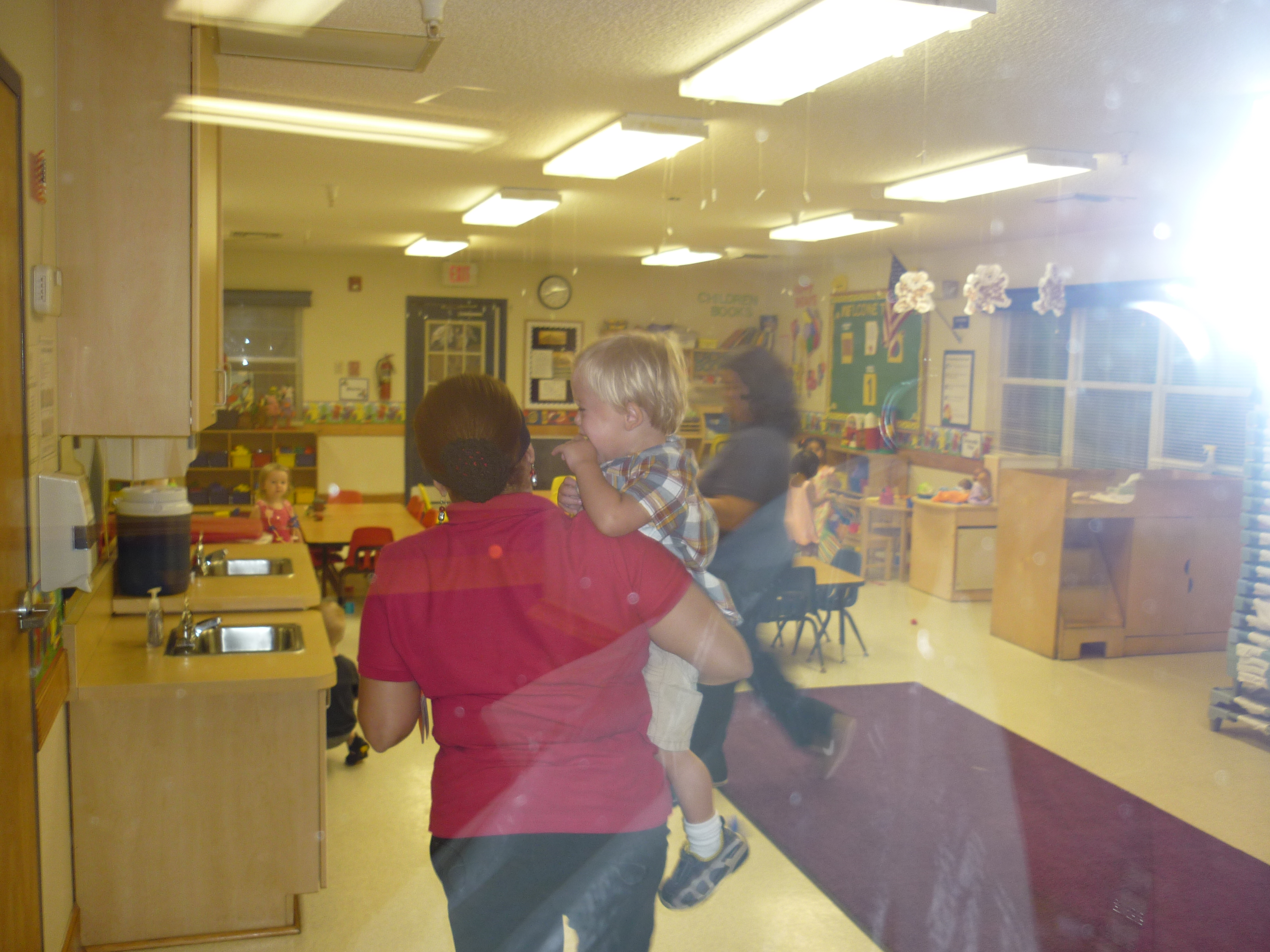 Andy gave Matty a kiss goodbye, we went to leave the room, and Matty’s panic set in. He raced for door and tried to sprint out after me. The teacher caught him and he started to cry. I wanted to stand at the window and wave at him, but we all know that isn’t a nice thing to do to them. The teacher quickly walked off and we left. :O(
