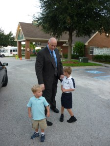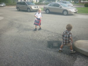 The boys ran out of the building and out to the car….all in all I would say that Matty had a pretty good first day of preschool.