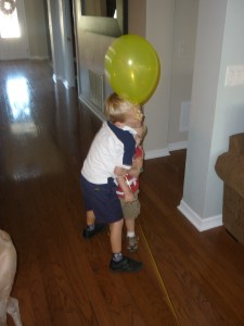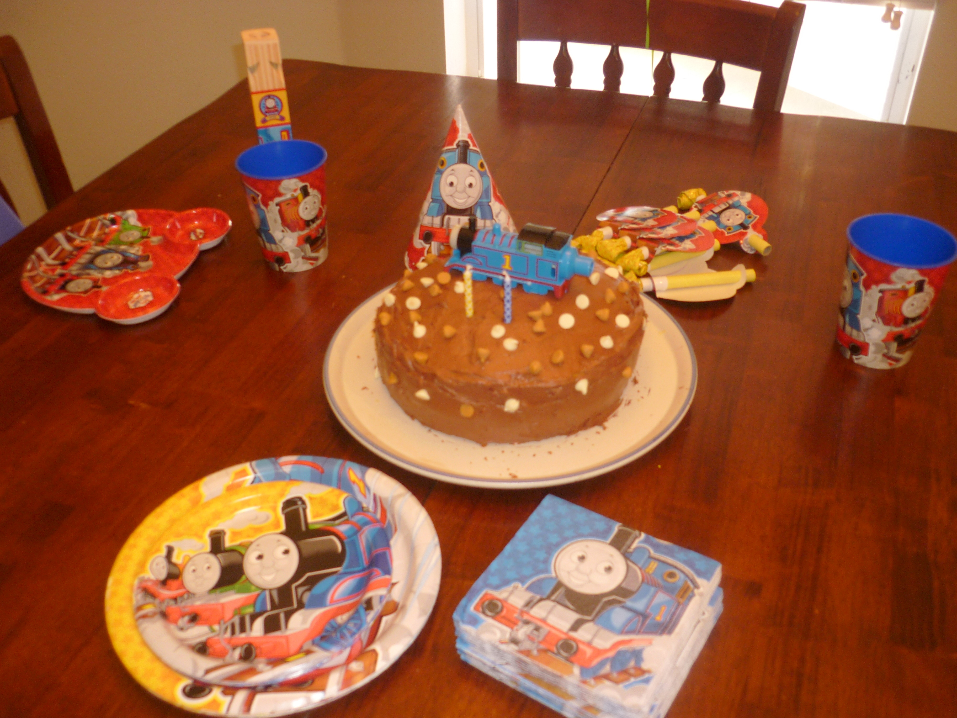 After we left the school, we headed home and again surprised Matty with Thomas decorations, a big homemade cake, and a giant singing Thomas balloon. Davy immediately ran and gave him a big hug when we got home.