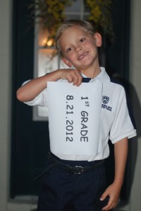 Davy had a great first week. Wednesday morning when we got to school he informed us that he didn’t want us to park the car, that we were to go in the car line and drop him off. Andy pulls up, opens his door, and he just runs off. He didn’t even wait for one of the 5th grade patrols to escort him to his room. He turned, waved and then disappeared into a sea of little blue and white elementary children. He’s such a big boy. On Thursday morning while putting on his school uniform he says to me , “Mama I love this” (talking about his uniform) and when I asked him why he said because he was proud of it. So sweet. :O) Friday he tells me that he picked out and ate a healthy lunch (in the cafeteria they pick out their own meals) and then very excitedly he tells me that after school he gets to go to Beep with Ryan and they watch movies. Everyday he comes home and talks about one of his friends and something that he did that day at school. This year the theme is the solar system and a couple of years ago Brandie had given him a solar system mobile so Andy hung it up in his room. I can’t wait to hear about all of the things that he is going to learn.