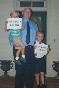 Davy is now officially a first grader. His teacher is Mrs. McElroy. Matty is in a Preschool 3 class called EP3 and his teacher is Ms. Adkins. Neither one of them seemed nervous, sad, nor anxious…just excited! We loaded into the car and off we went for drop off!
