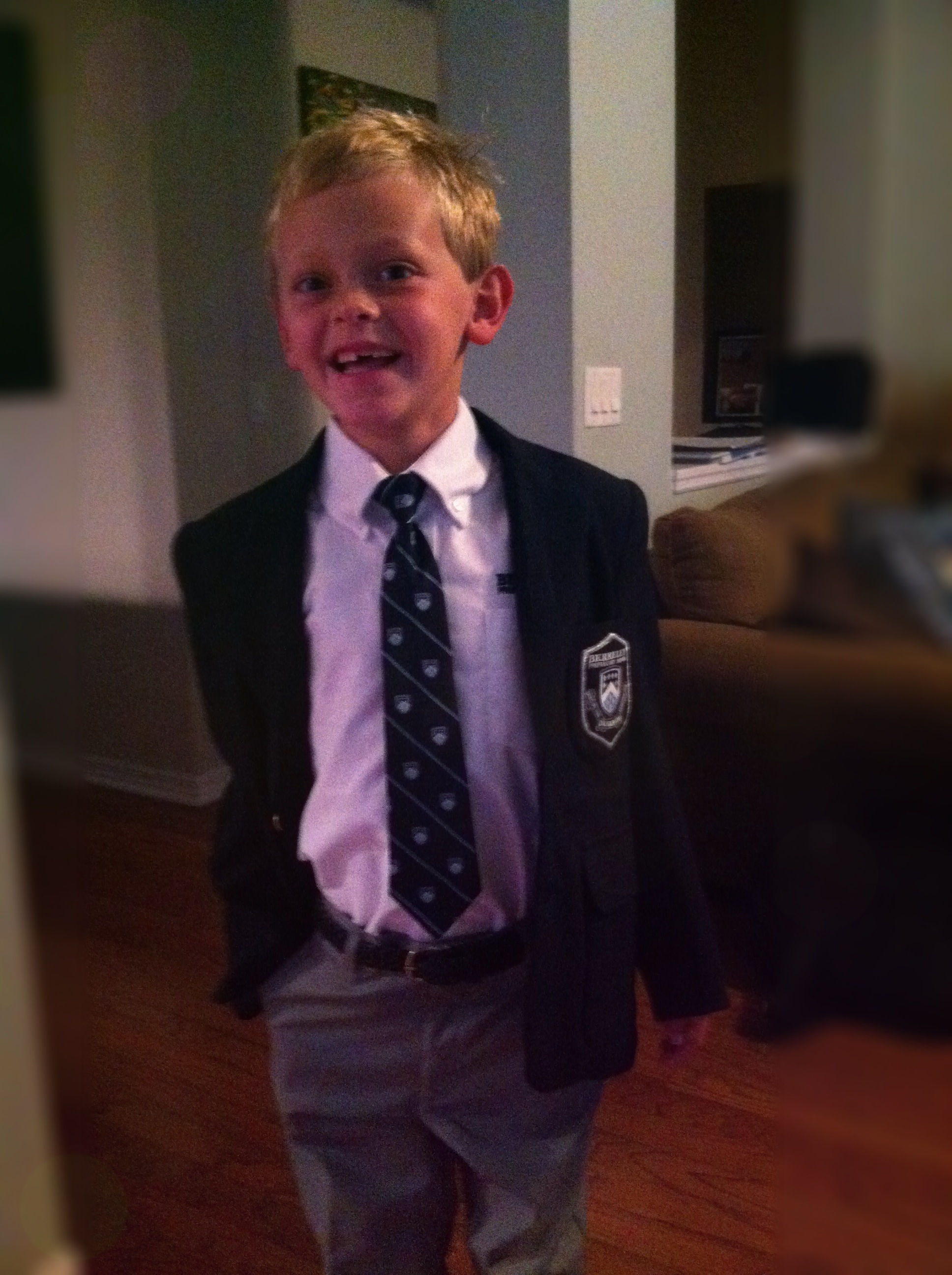 First grade boys on Friday’s officially have to dress in a blazer and tie, doesn’t Davy look so handsome…