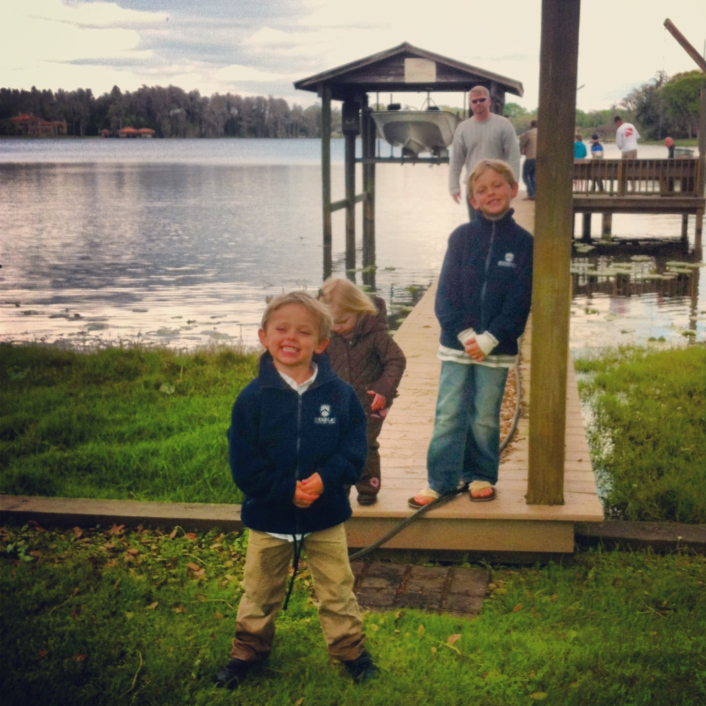After church this afternoon, Mr. and Mrs. Gaylord hosted a BBQ for class. The boys had a great time fishing, Davy even caught a five pound Catfish.