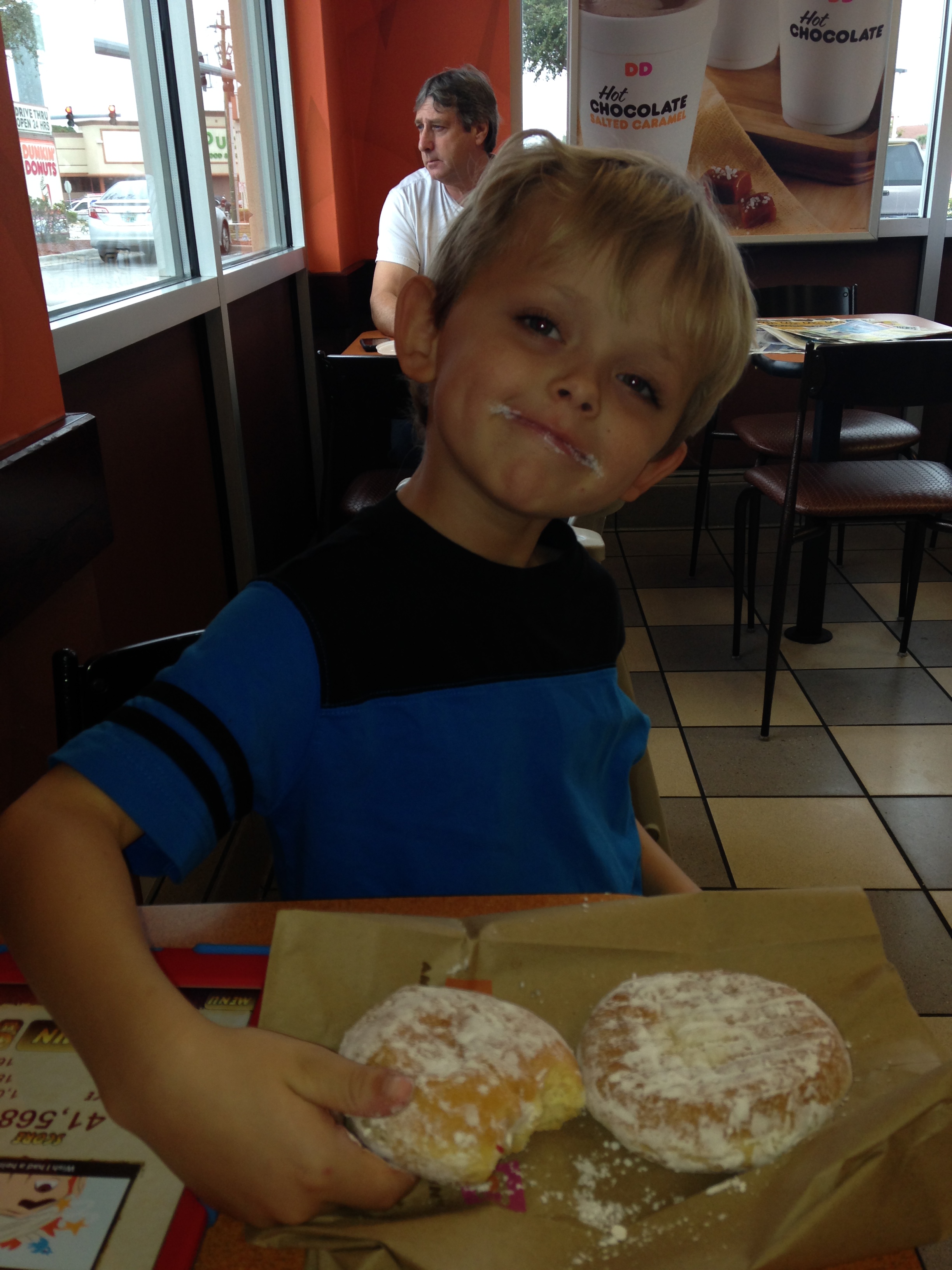 Matty and Andy went out for breakfast because he wanted cream filled powdered donuts…
