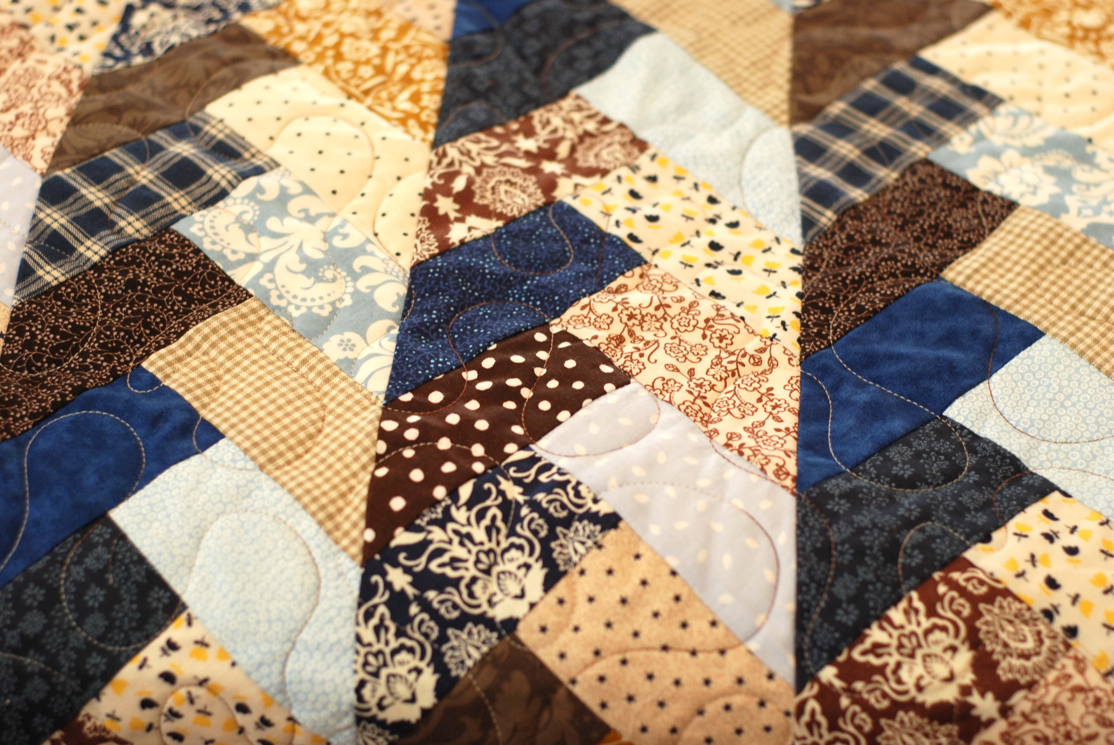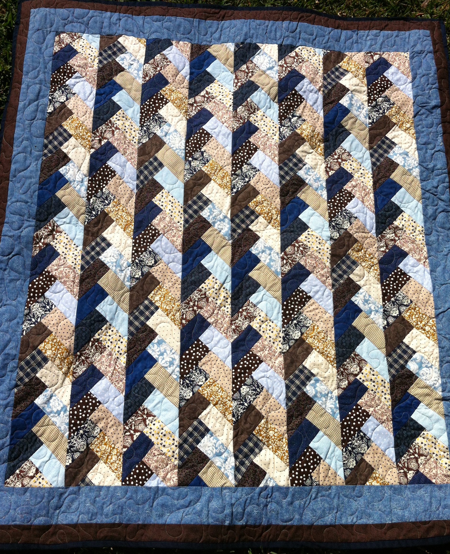 I decided to surprise Jenni with her quilt. Dad knew that I was going to make her one too, so he suggested that I make it in blue’s and brown’s because those are two of her favorites. So that is what I did! The quilt pattern is friendship braid, with a freehand quilt style. Her quilt isn’t all that large, more of a lap quilt since she likes to lay on the couch. Hope she likes it!…