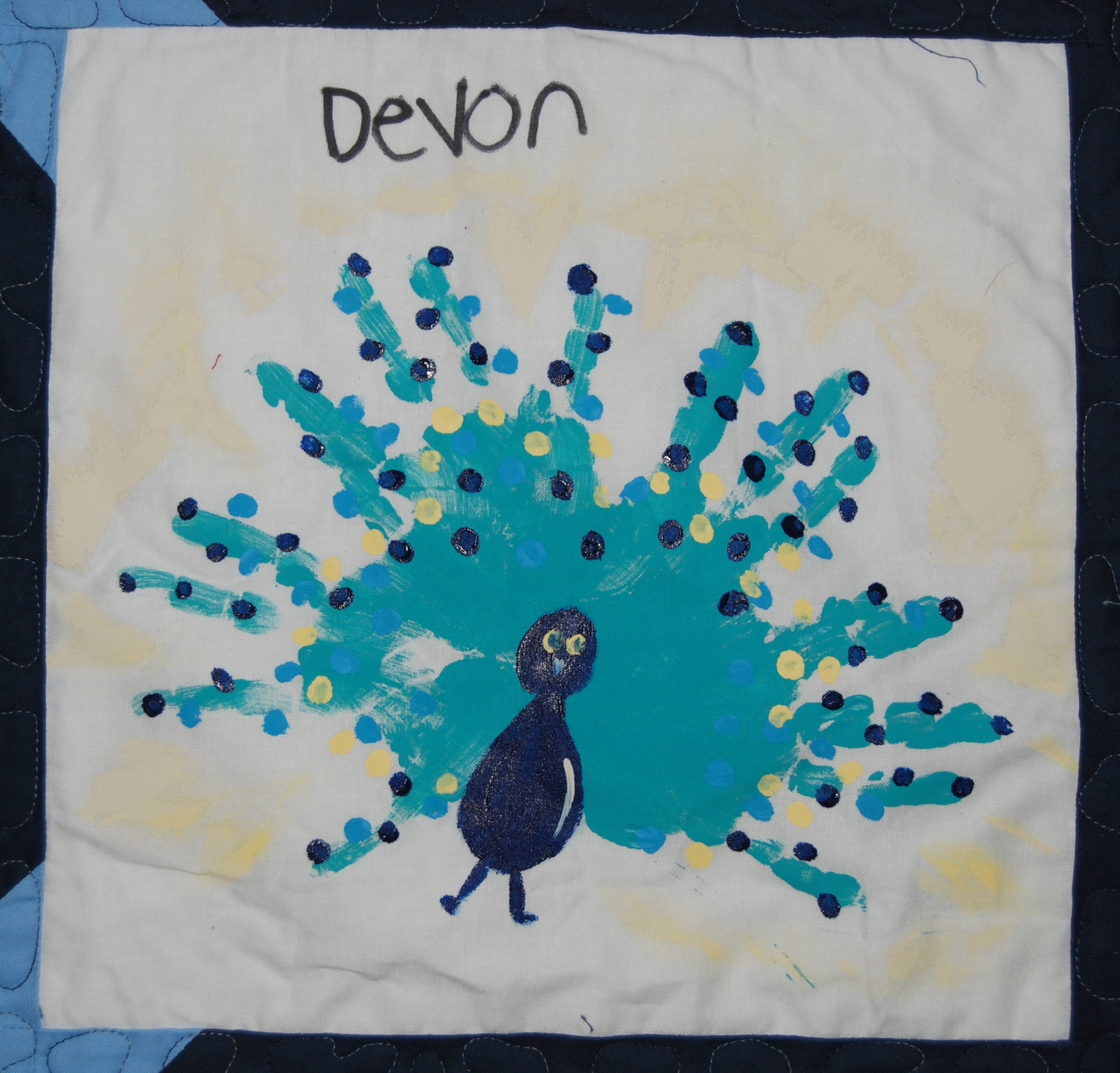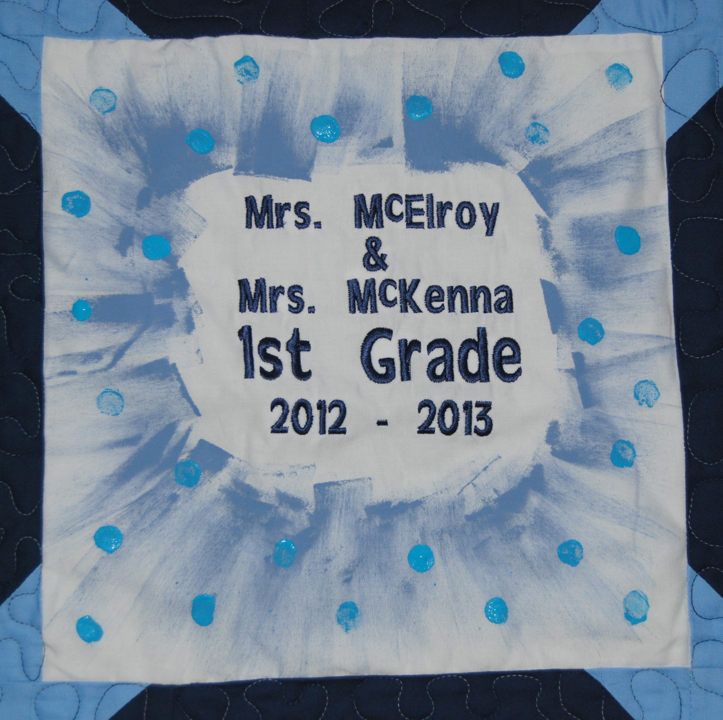 Here is this year’s Shades of Blue auction project for Davy’s class. We had a lot of fun making this quilt and think that it turned out beautiful!