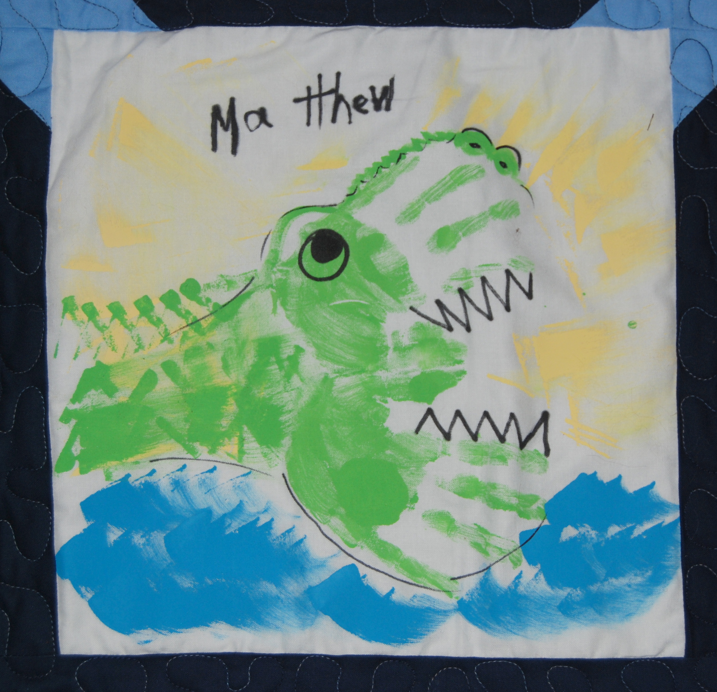 Earlier in the year, Davy asked me when I was going to make him a quilt. I didn’t think he was really serious about it except that he then asked me several more times throughout the summer and the fall. So, I decided to make him one for his birthday. The next question was what pattern would I do? After weeks of looking at patterns and thinking about the colors, Davy and I were shopping for some fall fabric when he asked me if he could pick out some fabrics for his quilt. It then became a hodge podge of colors and patterns and that’s when it hit me….I’ll make it the same as Andy’s! One day I will make Matty a quilt too and I love knowing that all three, although different colors, will still look the same. The fabric’s that I used were ones that he picked out, I picked out, a few from Andy’s quilt that I made as a wedding gift 10 years ago, and even a crib sheet of his that has sharks on it. It shouldn’t be surprising that he picked the green backing, but I did pick the star quilting pattern. He loved his quilt and that makes my heart melt.