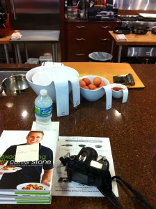 About a month ago, I received an email from the Rolling Pin, www.rollingpinonline.com, saying that he was coming to Florida, making this his only stop, launching his new cookware line, and doing a cookbook signing. I immediately called mom to see if she wanted to go with me and of course she did, so I went on-line and booked our tickets. This 50 person event sold out in less than an hour and a half. Squealing with delight I called Andy while he was at bible study (something that I never do), I tell him about the two tickets and he says, “Awesome! When are we going?…”. The crickets started chirping and after about 10 seconds or so I say, “Well…you aren’t, I asked my mom.” I could tell he was disappointed, but happy for her and I.