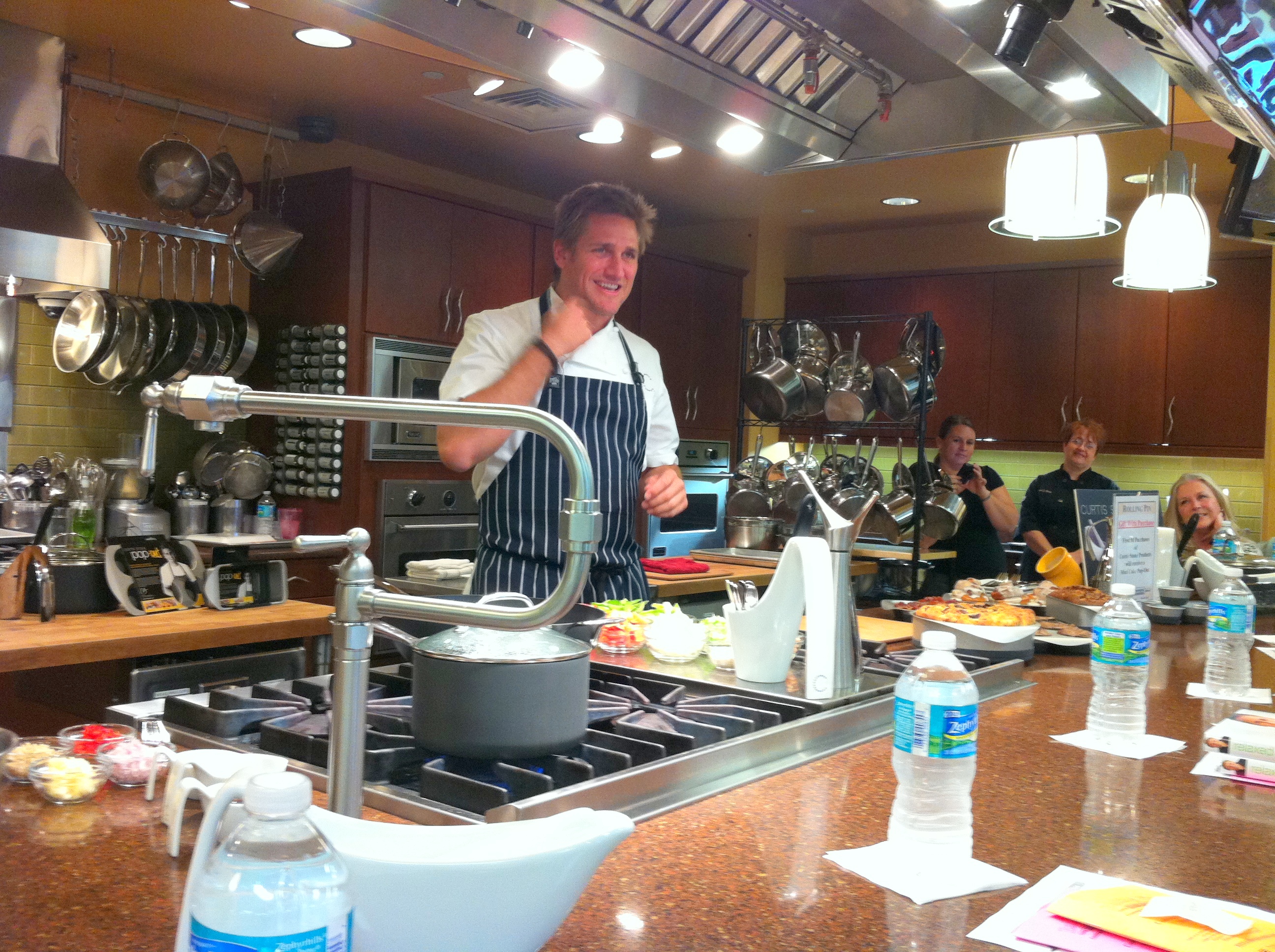 In 2005, I was 29 weeks pregnant with Davy and all of a sudden one day I just wasn’t feeling so good. About half way through the day I ran into my very good friend Debbie and at the time colleague (which being an outside sales rep was completely random) and I asked her about the horrible stomach pains I was having in which she replies, “That’s not normal at all! You should go straight to your OB and call them while you are on your way.” I am so thankful for her that day because I was in the process of going into premature labor and was having contractions. I probably wouldn’t have called or gone in when I did, I mean after all when you are pregnant all kinds of crazy things are going on (and it was my first baby) so I never expected this at week 29. I had a positive FFN test, meaning that there was a 60% chance that I would go into full preterm labor within 48 hours to 2 weeks. Needless to say, I was placed on strict bed rest for the next five weeks. I moved from the bed to the couch and then back to the bed. I watched a lot of movies and TV, two shows in particular “A Baby Story” and “Take Home Chef”. I loved this show, watched it whenever I could, and dreamed of having Curtis Stone come to our house to cook dinner. I even made poor Andy watch this show. Anyone who knows me knows that I love cooking, food shows, and Curtis Stone.
