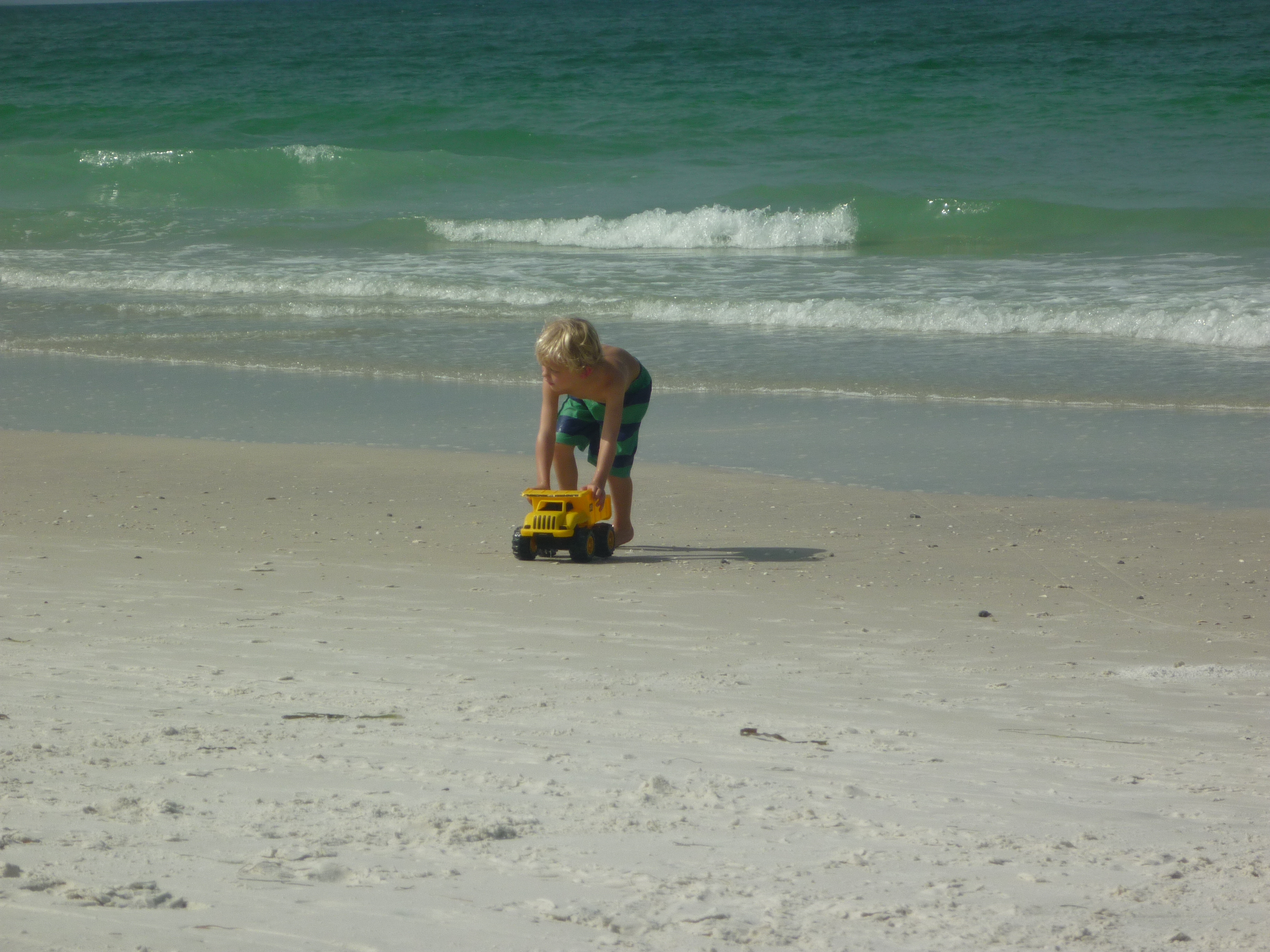 Here is Andy’s truck: 6 scooters, 5 bikes, 3 tricycles, 3 fishing poles, 2 wagons, beach toys, chairs, and tackle boxes, 1 bike baby seat, and 1 easy shade. We loaded up the van, Kelly’s SUV, Brian’s Camry and off we went.