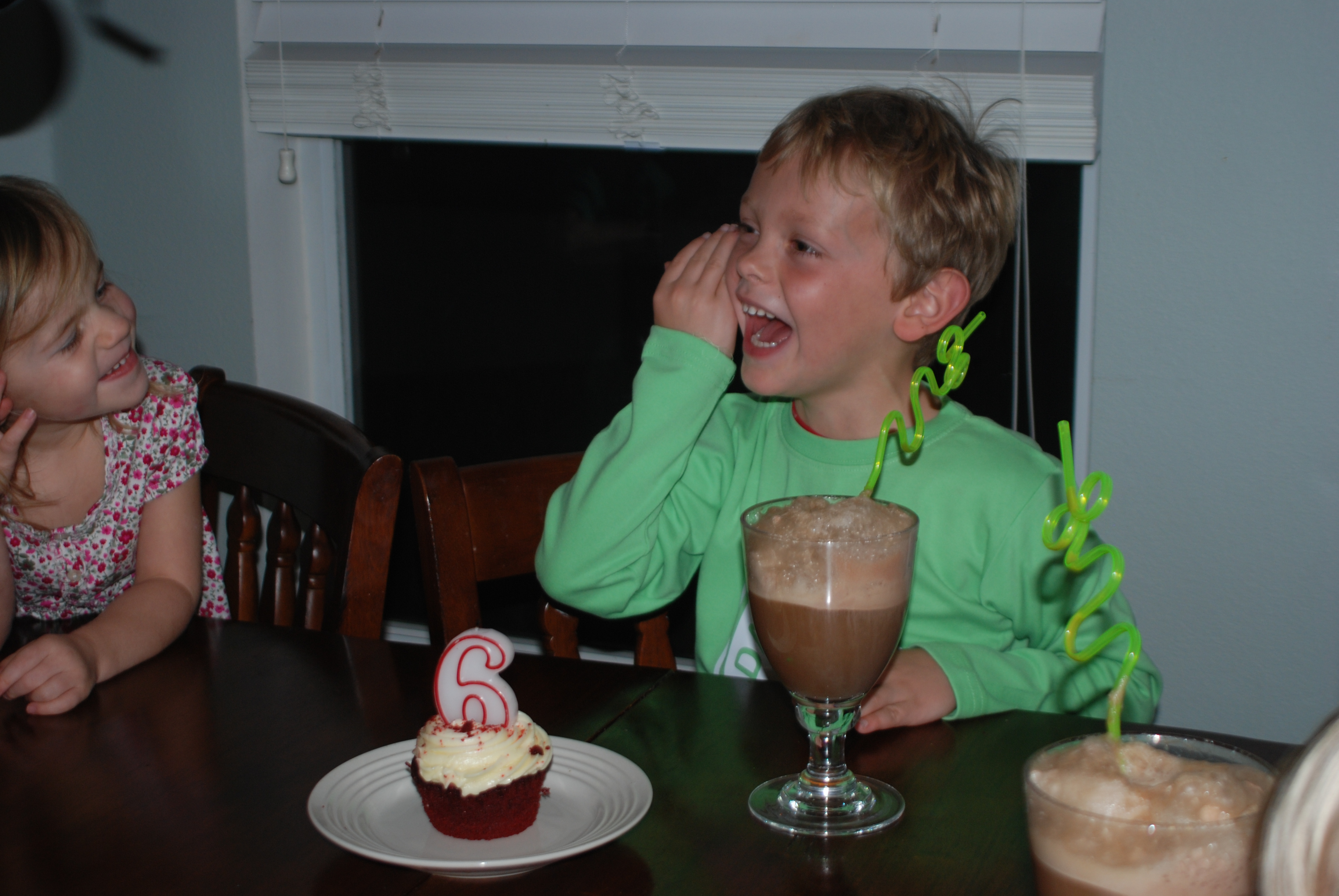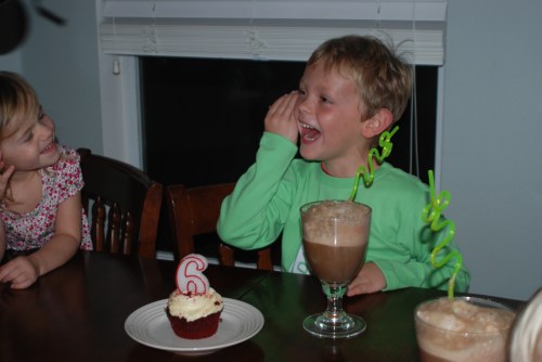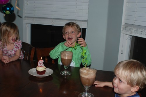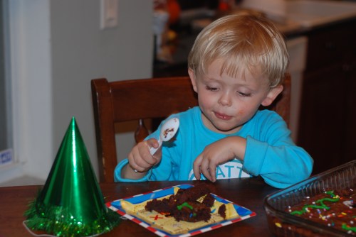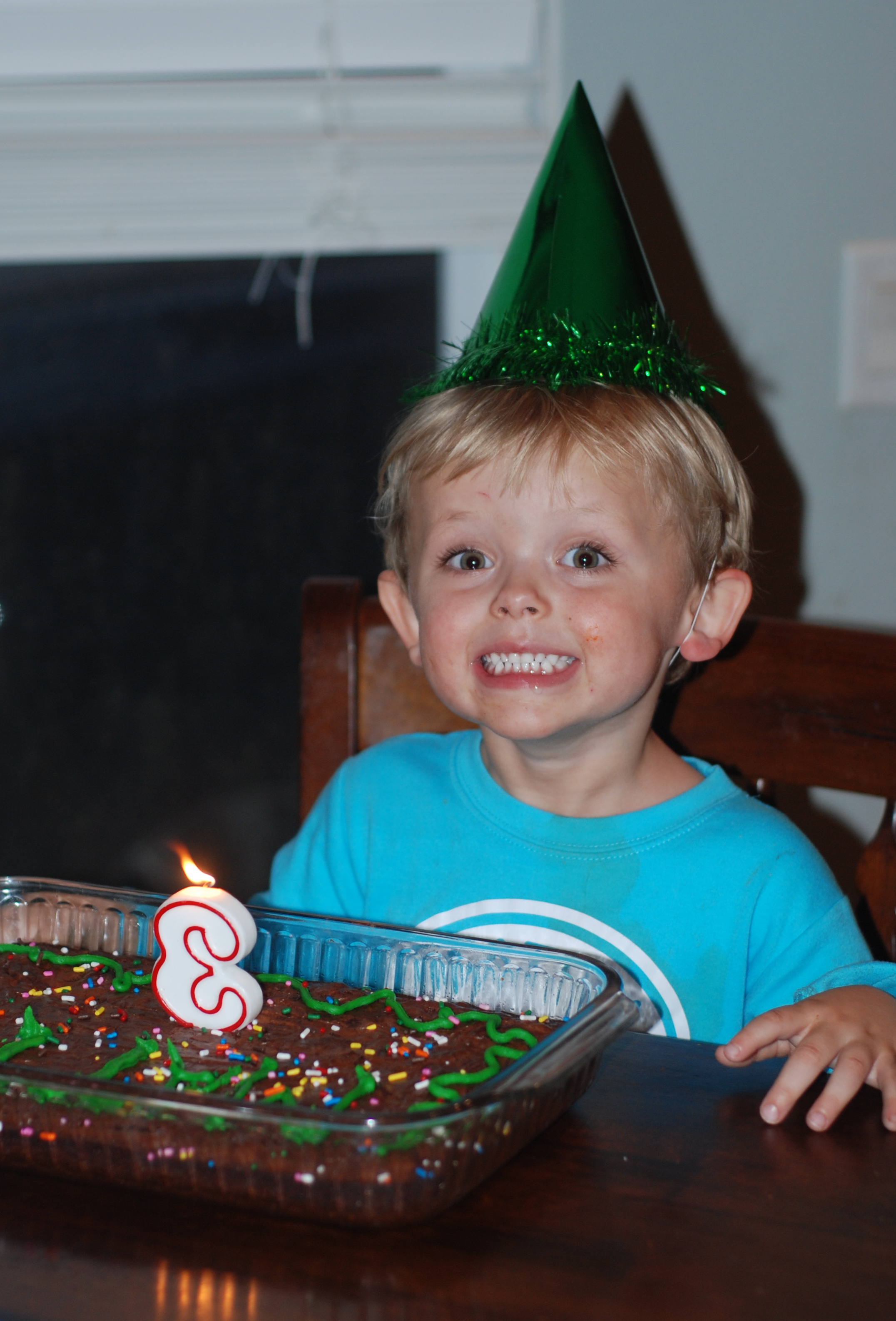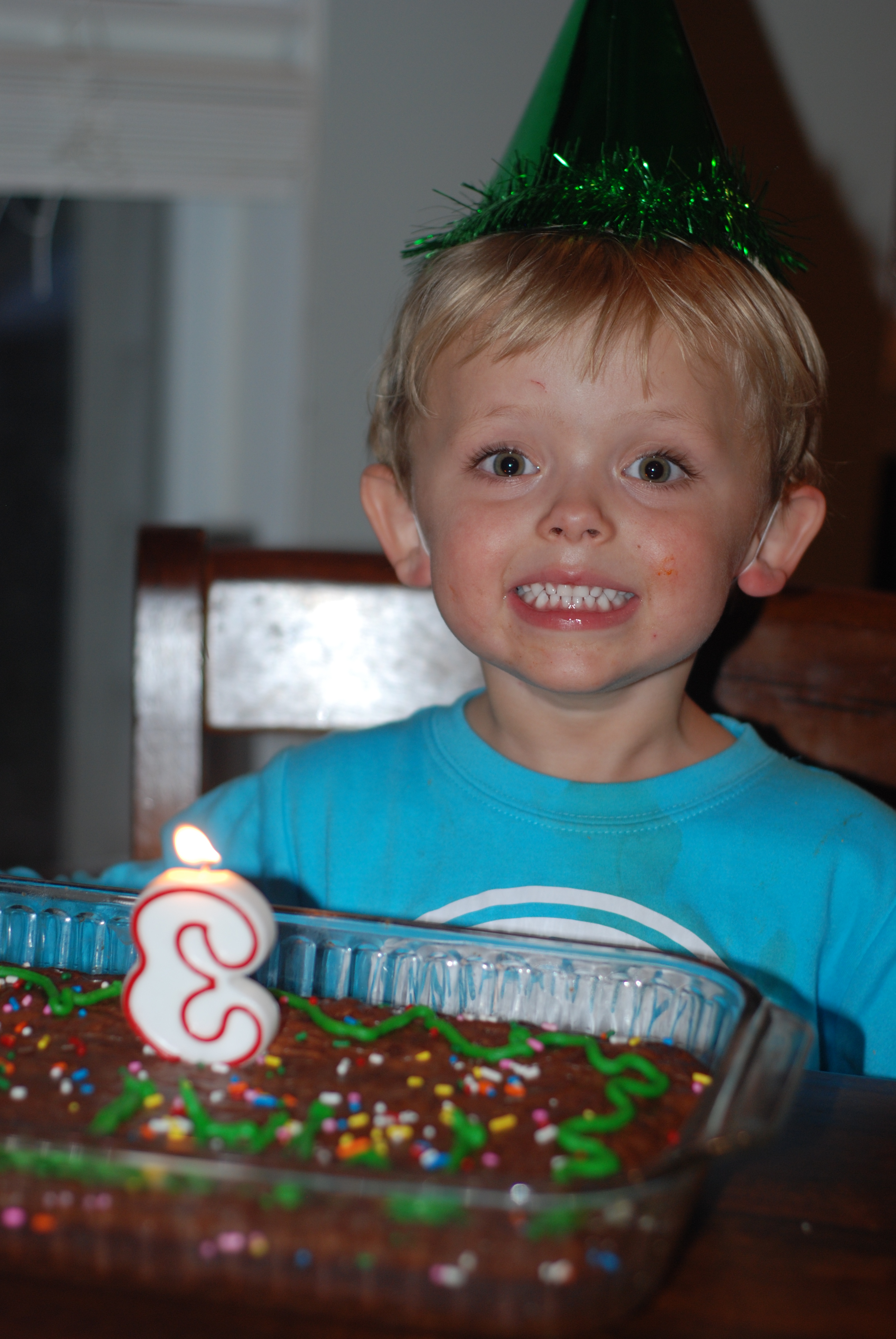 I asked Davy what he wanted his birthday theme to be on his actual birthday and he said, “How to train your Dragon”, a movie that recently came out. Lucky for me the party store had a few items left…so Dragons it is. In continuing with traditions, Davy woke up this morning to find a present in his bed…a new bug catcher kit and breakfast of his choice.