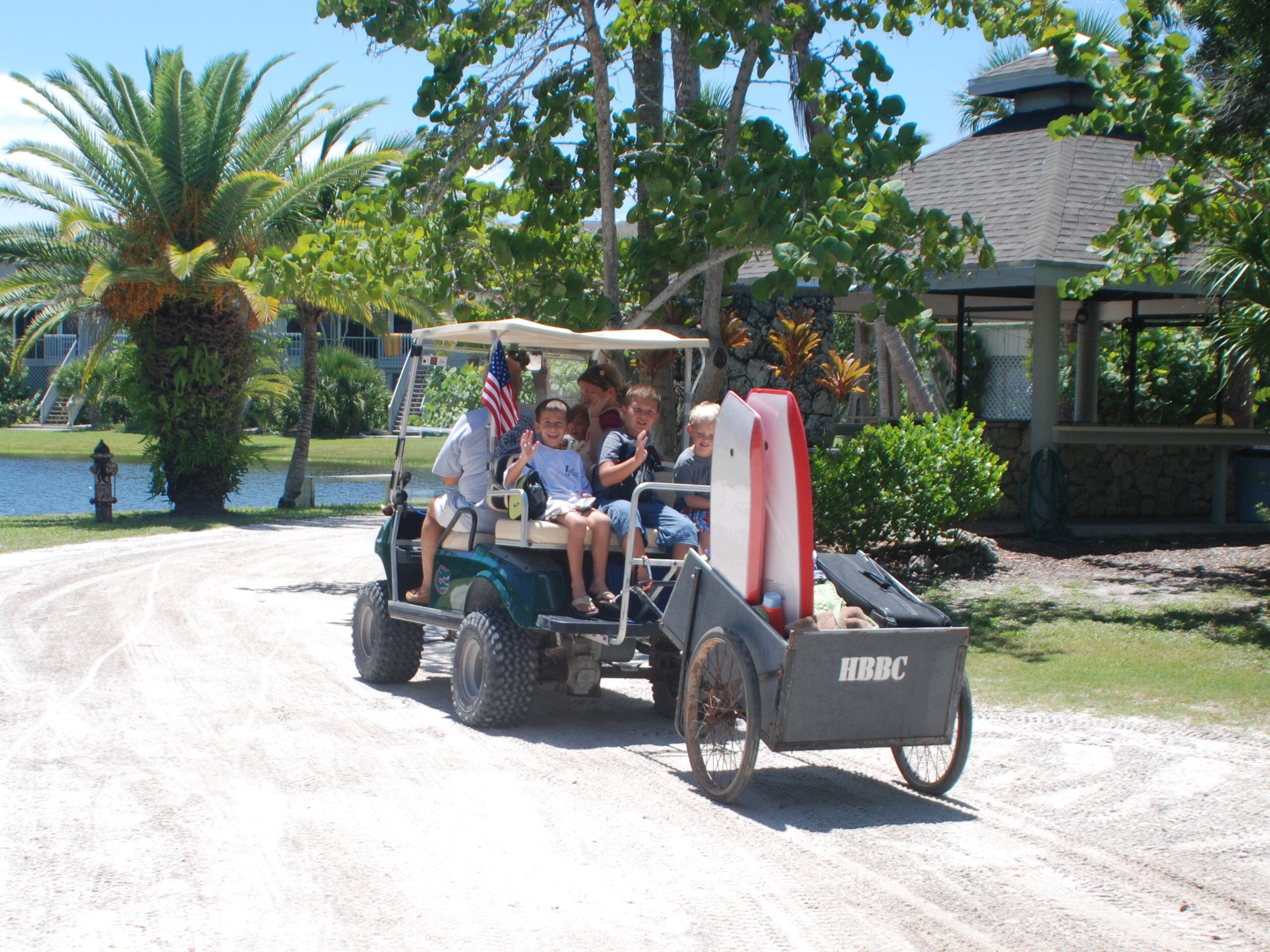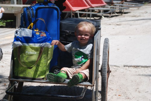 Now there are no cars on the island, just golf carts and wagons so I am sure that you can picture how much stuff is needed for 2 adults and 6 kids for one week, including the groceries… We were lucky that a man aboard the ferry offered to help us get our things to the condo with his golf cart.